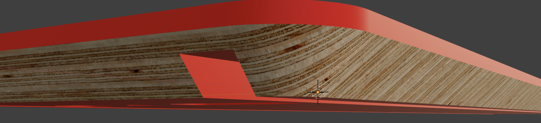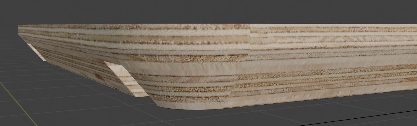 Mein Ziel ist es, eine Multiplex-Holz-Textur entlang dieser Kante zu platzieren, um einen realistischen Look zu erzielen. Leider habe ich trotz intensiver Bemühungen das Problem, dass die Multiplex-Streifen nicht kontinuierlich um das Brett herumgehen. Entweder sind sie versetzt oder verzerrt, und ich kann einfach keine Lösung finden, um das Problem zu beheben.
