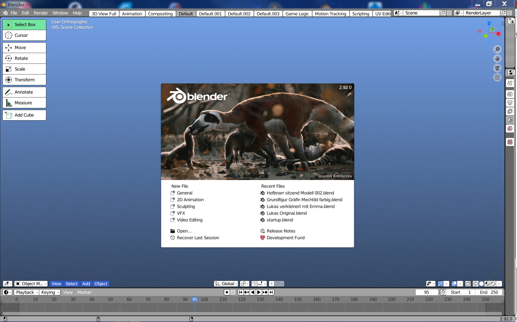 Ich habe dann auch schon andere Blender-Versionen ausprobiert: die für den Mac IBM- Prozessor und auch die Versionen 2.9 und 3.2, weil ich dachte, es könnte ja vielleicht an der Silicon-Version liegen. Da ist es aber genauso.