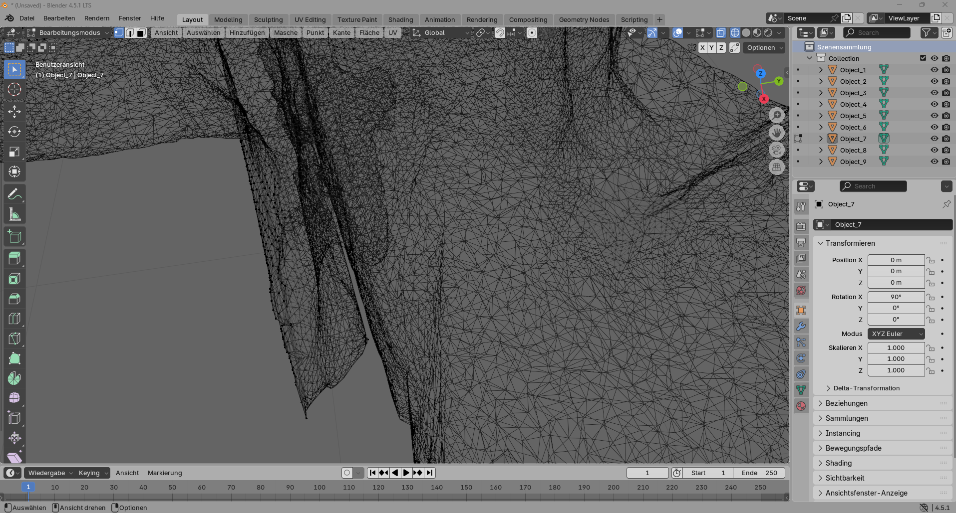 RE: Überlappende Wände ausbessern oder zusammenführen - BlenderFan - 07.08.2025 Hallo! Erstmal ein Kompliment von mir für diesen schönen Scan! Habe endlich die Stelle gefunden die du meinst und bin Malthea´s Meinung, dass du ausserhalb (dabei darf aber auch nicht ein einziger Vertice mit dem Hauptstrang der "Höhle" verbunden sein) der "Höhle" alles einfach im Edit-Mode und mit aktiviertem Edge-Select Mode löschen kannst in dem du eine Edge des zu löschenden Mesh-Teils auswählst und mit der Taste L alle zusammenhängenden Edges/Faces auswählen kannst. Diese dann einfach löschen. Wie Malthea schon erwähnte mache Sicherheitskopien um diese "Handarbeit" nicht irgendwann von vorne anfangen zu müssen... Ich habe dein Modell mal heruntergeladen und würde mich auch intensiver (mit Video-Shorts) dransetzen. (PN ist raus) Gruuuß