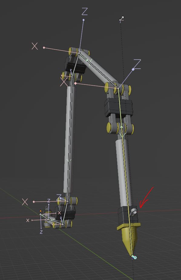 IK Lock - Sash Be - 15.01.2023 Hallo zusammen Nach einigen Jahren beschäftige ich mich wieder mit Blender 3D und arbeite Tutorials durch. Ich habe eine Armature erstellt und die entsprechenden Bones mit meinen Objekten ( ein beweglicher Arm ) verbunden. Alles funktioniert. Jetzt setze ich zu jedem Bone eine entsprechende IK Sperre. Soweit sogut. Bei einem Bone wird mit dem setzen der IK Sperre das entsprechende Objekt gedreht und ich weiß nicht weshalb. Im Netz habe ich nach einer Lösung gesucht bin aber nicht fündig geworden. Könnt ihr mir helfen? Gruß Sash RE: IK Lock - Ephraim - 15.01.2023 @Gurkenbier OK, ich schaue Mal was sich machen lässt. Generell eine gute Idee, wie ich finde. ![]() LG, Ephraim. PS: wobei ich jetzt auch keine Antwort aus dem Kopf wüsste... RE: IK Lock - Faba - 15.01.2023 Kannst du eine (vereinfachte) Version der Datei hochladen? RE: IK Lock - Sash Be - 15.01.2023 Danke erstmal für die bisherigen Antworten. Sorry das ich nicht vorher schon die Datei oder Screenshots hochgeladen habe. In der IK Kette habe ich auf der linken Seite den Bone um den Arm zu bewegen. Das Objekt zum zweiten Bone ist um Y gedreht sobald ich den Lock auf Y setze. Vielen Dank für eure tipps und noch n schönen Sonntag. .blend ist im Anhang RE: IK Lock - Faba - 15.01.2023 Hast du absichtlich das .blend1 (backup) hochgeladen anstelle das .blend? Geht ja trotzdem auf, aber vielleicht ist es nicht deine aktuelle Version. Wie sollen sich die einzelnen Bones der Chain denn richtig verhalten? Du hast die Rest-Position so modelliert: Soll sich der Arm in etwa so verhalten? Soll die Kupplung(?) stattdessen oben sein? Generell wurde ich bei IK-Chains zu einem Pole-Target raten. Das macht die IK-Chain generell kontrollierbarer. RE: IK Lock - Sash Be - 15.01.2023 Danke für deine rasche Antwort. Ä neee mit der Backupversion war versehentlich. Der Arm soll sich im Prinzipwie ein Bagger verhalten. Ich habe was ganz doofes entdeckt. Die Objekte waren tatsächlich "verdreht" und ich habe sie nun neu ausgerichtet. Nun klappts es aich mit dem Lock. Ich danke dir für deine Hilfe. |