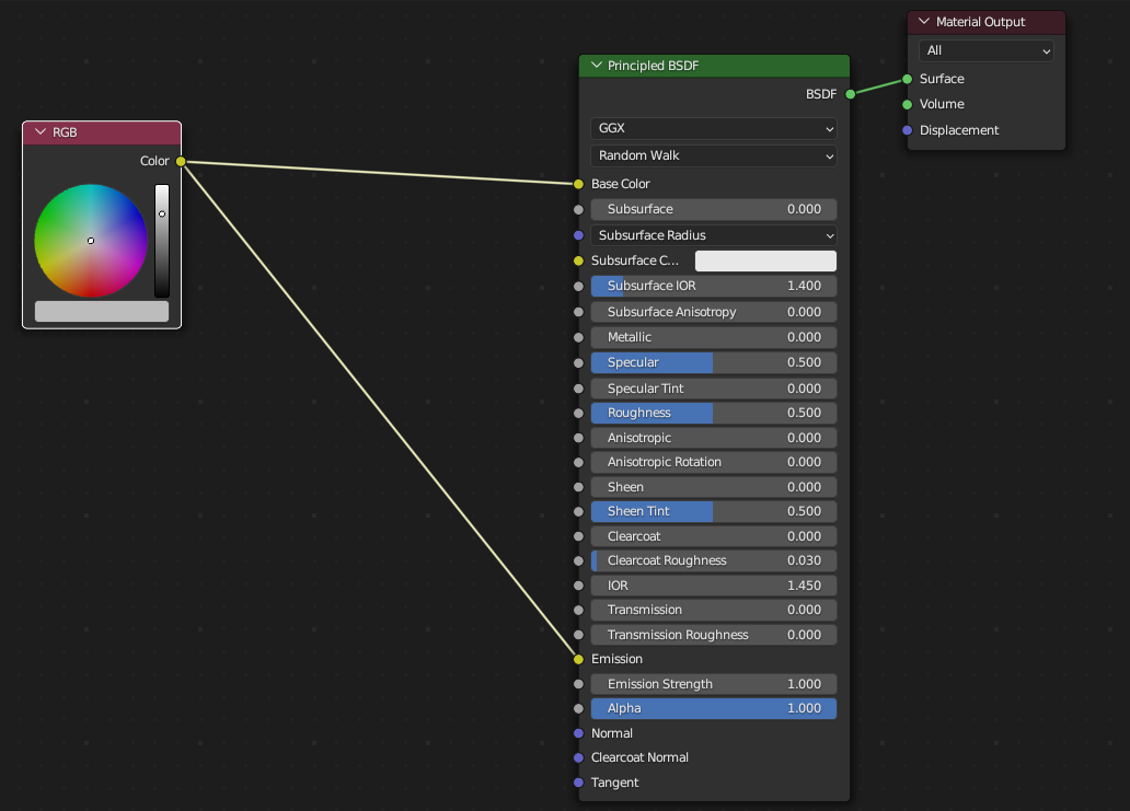 RE: Image as Plane Bild heller machen, aber wie ? - meitoma - 21.04.2023 Hallo und danke für die Tips. Nach dem setzen der World Coor auf Weiß ist das schon besser geworden. Kommt aber leider nicht an das Original ran. Da scheint die Sättigung und die Schärfe zu fehlen, wenn ich micht nicht irre. Anbei 2 Screenshots, 1. Bild --> Original, 2. Bild --> Images as Planes in Blender. Danke im Voraus. RE: Image as Plane Bild heller machen, aber wie ? - Ephraim - 21.04.2023 Da fallen mir drei Möglichkeiten ein: 1. Probiere mal, den Specular Wert des Materials (vom Bild) auf 0 zu setzen. 2. Du kannst das Bild ein bisschen leuchten lassen. Einfach den Color Output des Image Nodes mit dem "Emission" Input des Principled BSDFs verbinden und den Emission Wert bei bedarf noch etwas verändern ("Emission Strength"). Wenn du keinerlei Reaktion auf andere Objekte (keine Spiegelungen, Schatten auf dem Bild, etc...) brauchst, sondern nur das Bild in der originalen Farbe wiedergeben möchtest, kannst du auch den Principled BSDF Node weg lassen und den Image Node gleich an den Material Output anstecken. Ich hoffe, dass hilft. LG, Ephraim. RE: Image as Plane Bild heller machen, aber wie ? - meitoma - 21.04.2023 Hallo und danke für die Info. Ich habe es im Compositor so hingekommen: was dann im Anschluss so dargestellt wird: Ist es das, was Du meintest ? Ich kenne mich mit dem Node-Editor so gut wie garnicht aus. Mit dem was Du geschieben hast: "Einfach den Color Output des Image Nodes mit dem "Emission" Input des Principled BSDFs verbinden und den Emission Wert bei bedarf noch etwas verändern ("Emission Strength")" verstehe ich leider nur Bahnhof, sorry und danke, RE: Image as Plane Bild heller machen, aber wie ? - Ephraim - 21.04.2023 Schön, dass du es gelöst hast, hier trotzdem noch die Erklärung zu der Sache mit Emission: Das ist der Node aufbau, wie du ihn am Anfang hast (du kannst dir statt dem RGB Node einfach einen Image Node Vorstellen, der Effekt ist der gleiche): Dann kannst du einfach den "Color" Output des Image Nodes (bzw. hier des RGB Nodes) mit den "Emission" Input des "Principled BSDF" Nodes verbinden: Dann kannst du noch bei Bedarf die Stärke des Leuchtens regulieren, dass findest du unter dem "Emission" Input des "Principled BSDF" Nodes. Ich hoffe das erklärt alles. ![]() LG, Ephraim. RE: Image as Plane Bild heller machen, aber wie ? - meitoma - 22.04.2023 Hallo und Danke für die Screenshots. Leider weis ich nicht, wie ich dazu komme, was Du gemacht hast. Wenn ich das Bild als Image (Image as Plane" importiere und dann zum Compositor wechsle sieht das bei mir so aus: RE: Image as Plane Bild heller machen, aber wie ? - Ephraim - 22.04.2023 Ich bin ja da nicht im Compositor, sondern im Shader Editor (auch oben im Workbench "Shading" zu finden). Abseits davon: Gibt es einen Grund dafür, dass du noch eine Blender Version benutzt, die älter als 3.0 ist (3.5 ist aktuell)? LG, Ephraim RE: Image as Plane Bild heller machen, aber wie ? - meitoma - 22.04.2023 Hallo und danke ..... Shading gefunden. Zu Deiner Frage ..... Ich mache für meine Urlaubsvideos kurze 3-D Animation / effekte, damit nicht immer nru 1 Bild nach dem anderen zu sehen ist. Angefangen habe ich mit Blender 2.57 und dann Aufwärts. Mit der neuen Steuerung ab 2.8 komme ich nicht so richtig zu recht. Einige Sacen gehen mir bei dem alten Menü schneller von der Hand. Da brauch ich nicht mit Cycles od. Eevee experimentieren. Und mit den ganzen Einstellungen im Node-Editor komme ich nicht zurecht. Ich finde diese sehr kompliziert anzuwenden. Meine Animationen sind ca. 4-8 Sekunden (Flaggenanimation, Wasserspiele usw.) lang, nichts groses halt. Hoffe das damit Deine Frage beantwortet ist. RE: Image as Plane Bild heller machen, aber wie ? - Ephraim - 22.04.2023 Ja, ist beantwortet, vielen Dank für die ausführliche Erklärung. ![]() Ist ja auch nicht schlimm eine ältere Version zu benutzen, ich wollte nur darauf hinweisen, da es auch schon vorgekommen ist, dass nur ausversehen eine ältere Version verwendet wird. LG, Ephraim. |