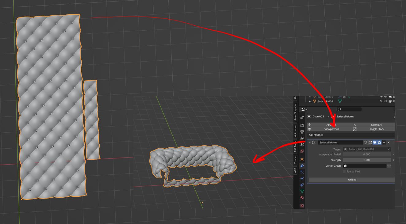 Vielleicht hat jemand noch weitere Ideen? RE: Chesterfield - Ephraim - 07.08.2022 Was ist UV-Mesh? Da endet mein Wissen leider... Tolles Sofa! Ich könnte aber nicht entscheiden, welches mir besser gefällt... LG, Ephraim. RE: Chesterfield - Faba - 07.08.2022 Aus dem Low Poly Mesh habe ich den Teil separiert, der das Polster werden soll. Bei den Textools (das ist ein kostenfreies Addon) gibt es die Möglichkeit das Mesh entsprechend dem UV Map platt zu machen (als Shapekey). An das entstandene, flache Mesh habe ich ein Polstermesh mit gleicher Größe und Form angeglichen und anschließend mit dem Surface Deform Modifier angehängt. Wenn man dann den Flach-Shapekey auf dem UV Mesh wieder auf 0 dreht, folgt das Polstermesh dem UV Mesh. RE: Chesterfield - Ephraim - 07.08.2022 Vielen Dank, für die Erklärung. Werde ich morgen eventuell (habe morgen Geburtstag, deshalb weiß ich nicht ob ich dazu Zeit finde) Mal Probieren! LG, Ephraim. RE: Chesterfield - Faba - 08.08.2022 (07.08.2022, 10:53 PM)Ephraim schrieb: habe morgen Geburtstag, deshalb weiß ich nicht ob ich dazu Zeit finde Alles Liebe zum Burtzeltag!