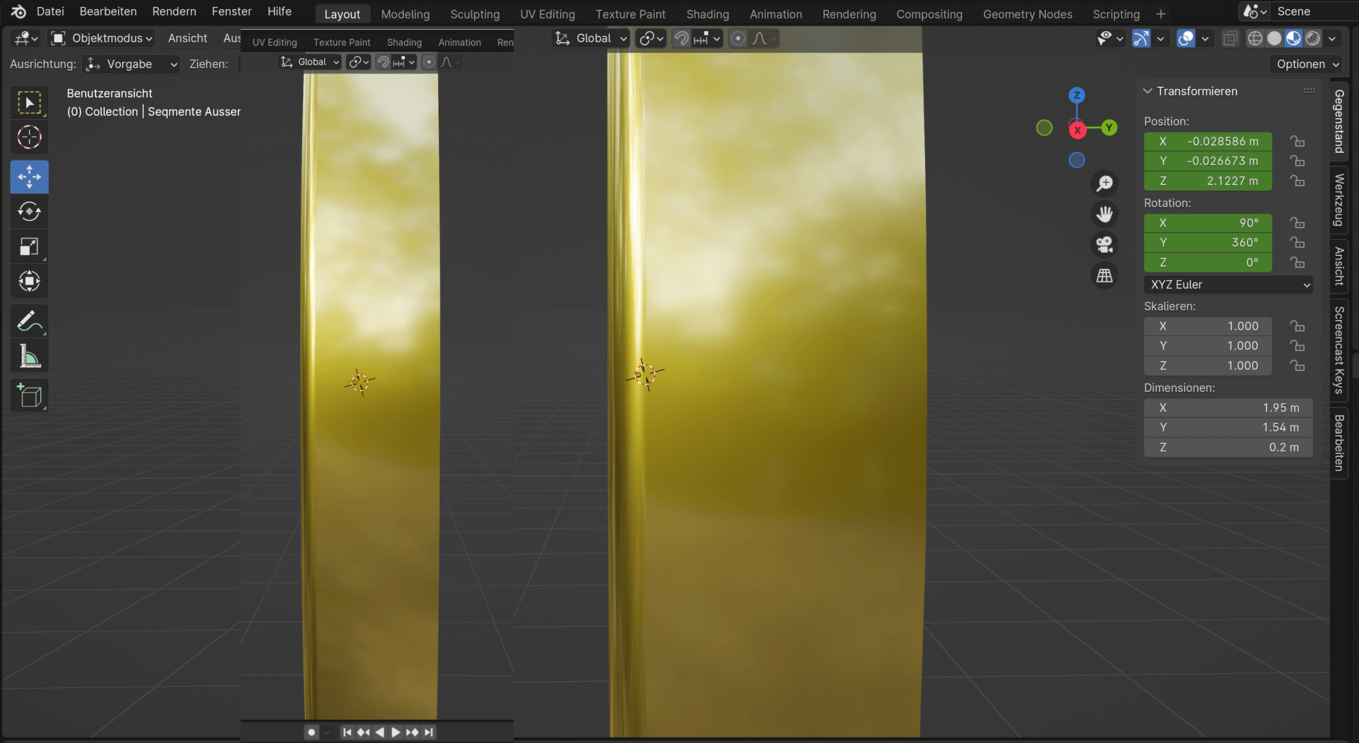 Standard Reflektion ausschalten? - Idefix - 04.02.2024 Hallo Leute, wird ein Objekt mit glänzender Oberfläche erstellt, reflektiert Blender sein Standardbild an diesem Objekt. Ich habe dazumal wo ich es wußte nicht notiert wie und wo das ausgeblendet werden kann. Hat darüber wer von euch Wissen? RE: Standard Reflektion ausschalten? - Mikorsky.S.92 - 04.02.2024 Normalerweise nicht. Nur wenn du oben rechts in der 2. Shaderansicht bist was nur als ein material-review dient. Ansonsten beim Rendern hast du dies nicht und es werden nur Szenenlichtquellen sichtbar. RE: Standard Reflektion ausschalten? - Idefix - 04.02.2024 @Mikorsky.S.92 ich meine das Bild von Blender mit Blumen oder so das sich im Objekt mit Glanzoberfläche spiegelt. Vor längerer Zeit konnte ich es schon mal abschalten. Finde es jetzt nicht mehr wo das zu deaktivieren ist. RE: Standard Reflektion ausschalten? - TripTilt - 05.02.2024 im shader editor von object and world umschalten und im worldshader eben die evtl vorhandene HDRI beleuchtung auf strength 0 runterschrauben oder durch einen einfarbingen RGB Wert ersetzen oder was du so brauchst. RE: Standard Reflektion ausschalten? - Idefix - 05.02.2024 Da ist ein automatisches Bild von Blender mit Himmel, Bäumen und Blumen das sich spiegelt. Das "Spiegelbild" kann man einfach mit einem Klick wegschalten. Ich finde das Tutorial welches die Möglichkeit zeigte bzw. die Option nicht mehr. Zum Veranschaulichung ein Bild RE: Standard Reflektion ausschalten? - Mikorsky.S.92 - 05.02.2024 Ja das ist doch nur zum besseren Veranschaulichen deines Materials. Wenn du das weg haben möchtest musst du nur OBEN RECHTS wo die Kugeln sind auf die ganz rechte klicken. Das ist dann nämlich das Shading mit deinem Render-Ergebnis. Und.. was stört dich daran? RE: Standard Reflektion ausschalten? - Idefix - 06.02.2024 Wir sind der Lösung ein ganzes Stück näher gerückt. Es geht um die Oberflächenbeurteilung während der Erstellung. Ich hatte das schon mal deaktiviert. Nur wo war die Möglichkeit dazu grad mal? RE: Standard Reflektion ausschalten? - TripTilt - 07.02.2024 Naja, du kannst "Scene World" aktivieren und dann im Worldshader eben eine einzige Farbe verwenden um die szene zu beleuchten. Oder du nimmst ein einfarbiges BIld und speicherst das als .hdri und kannst das dann unter dem Zahnrad neben der Kugel reinladen und zu der Auswahl liste hinzufügen. Komplett abschaten geht nicht, dann bringt die Material Preview ansicht ja nix. Oder eben emission shader für die einzelnen materialien auf den meshes verwenden, dann spiegelt sich auch nix. RE: Standard Reflektion ausschalten? - Idefix - 07.02.2024 @TripTilt Super, vielen Dank, schaue mir deinen Hinweis gleich an! Inzwischen habe ich etwas herausgefunden! Die gegenständlichen Dateien liegen im Blender Verzeichnis WORD mit der Extension *.exr Habe das Bild mit seinen Hintergrunddaten mal sichtbar gemacht. Individuelles exr Bild anfertigen und in das WORD Verzeichnis einstellen. RE: Standard Reflektion ausschalten? - Ephraim - 07.02.2024 Du kannst auch einfach eine Environment Texture hinzufügen, das bleibt dann auch beim Render sichtbar und nicht nur in der Vorschau: Eine normale Image Texture reicht nicht aus! Beim Finalen Render wird dieses Standardbild ja gar nicht benutzt, das ist nur da um für eine natürliche Beleuchtung in der Vorschau zu sorgen. Wenn du aber eh mit Eevee renderst, kannst du auch einfach in den "Render Preview Mode schalten: Dort werden dann die eingestellten Word Settings benutzt. Du kannst aber auch im Material Preview "Scene World" einstellen, das nutzt dann auch die eingestellten Word Settings. Ich hoffe das hilft. LG, Ephraim. |
