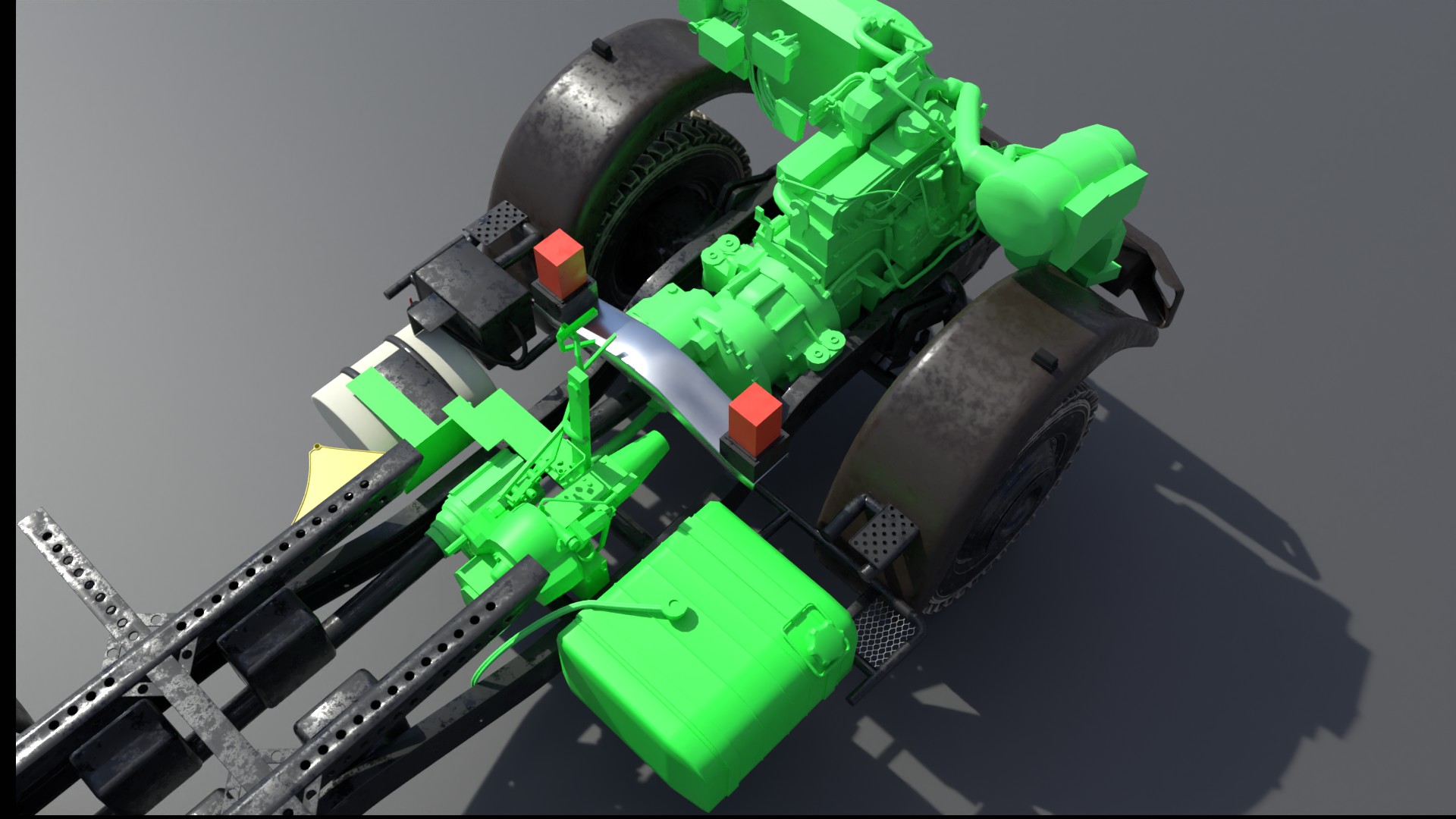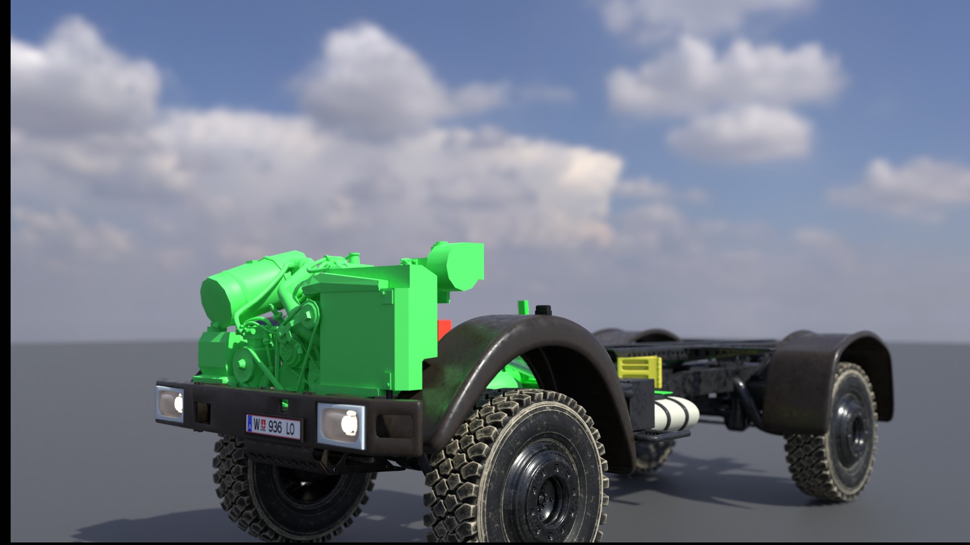 Hier möchte ich euch ein paar neue Bilder vom Unimog zeigen. Ich musste die Low-Poly-Daten verwerfen, da noch Anpassungen an vielen High-Poly-Teilen notwendig waren. Deshalb gibt es noch keine Textur. Diese behalte ich mir für den Schluss auf.