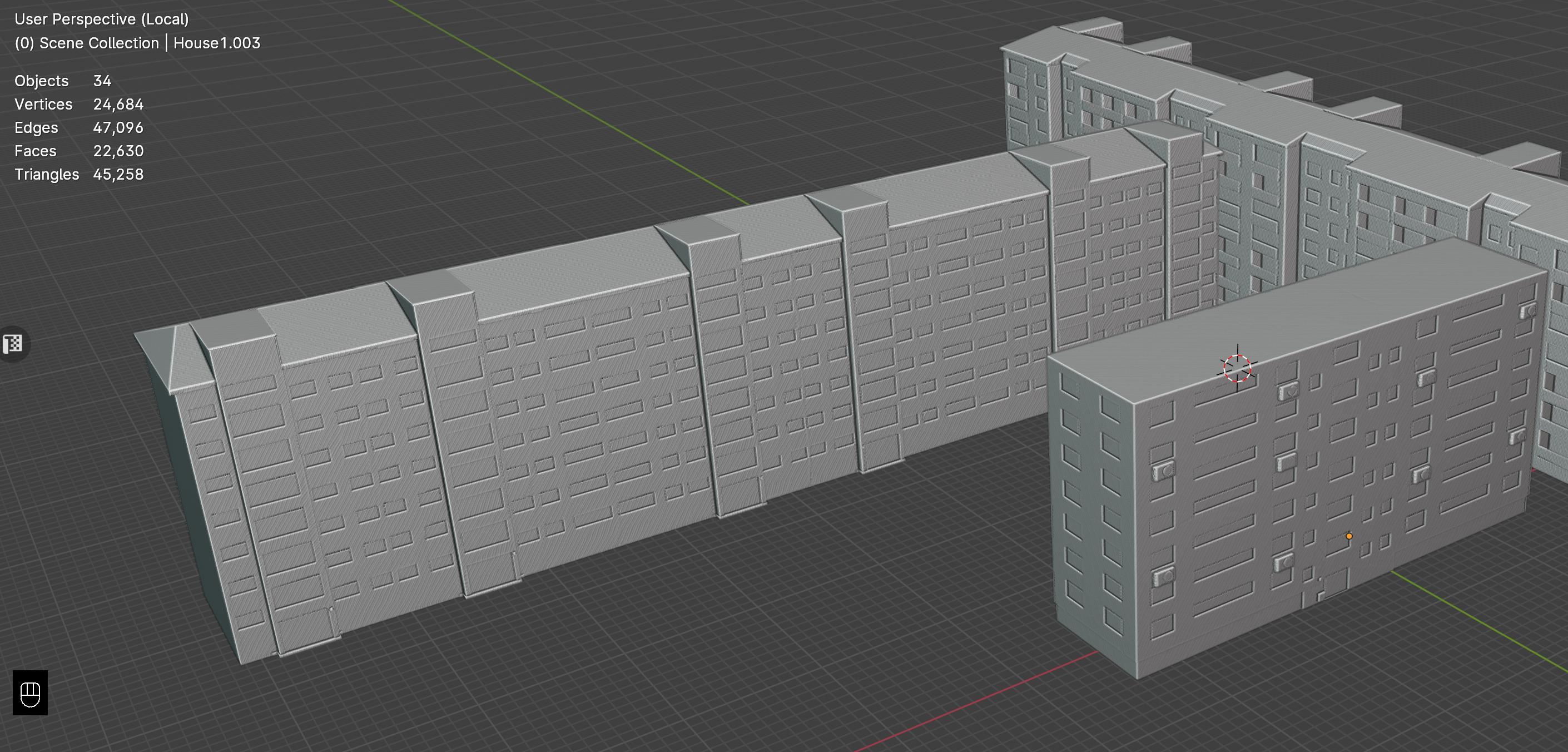Die Häuser sind super schlank, wie man am Polycount sehen kann.
