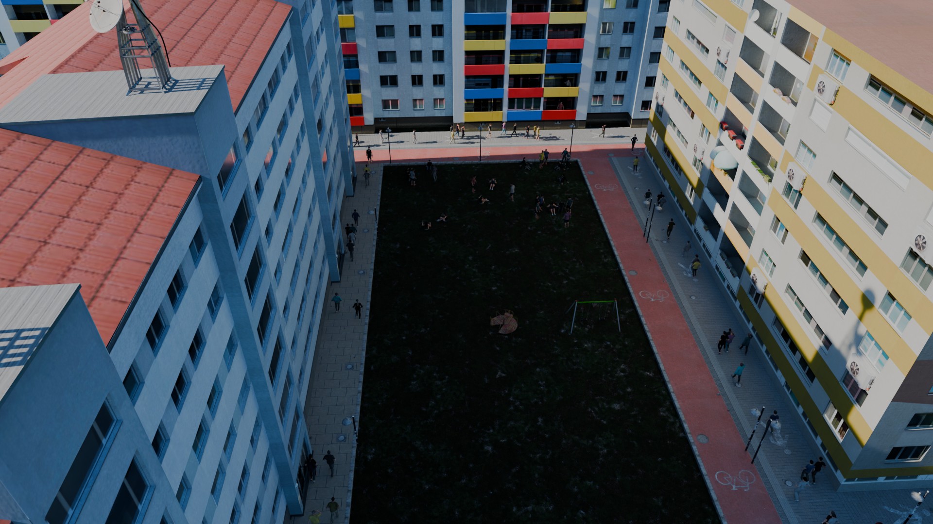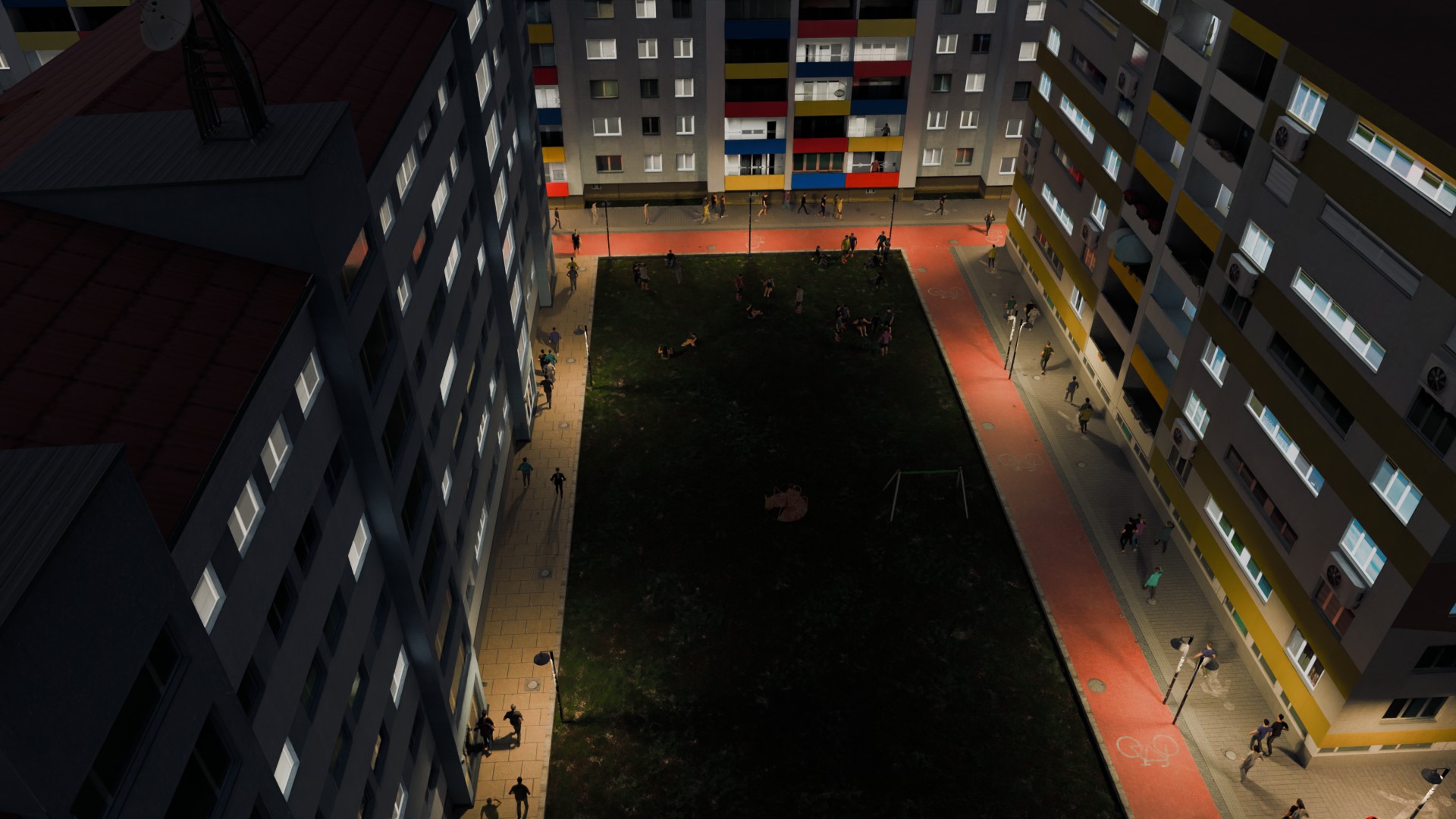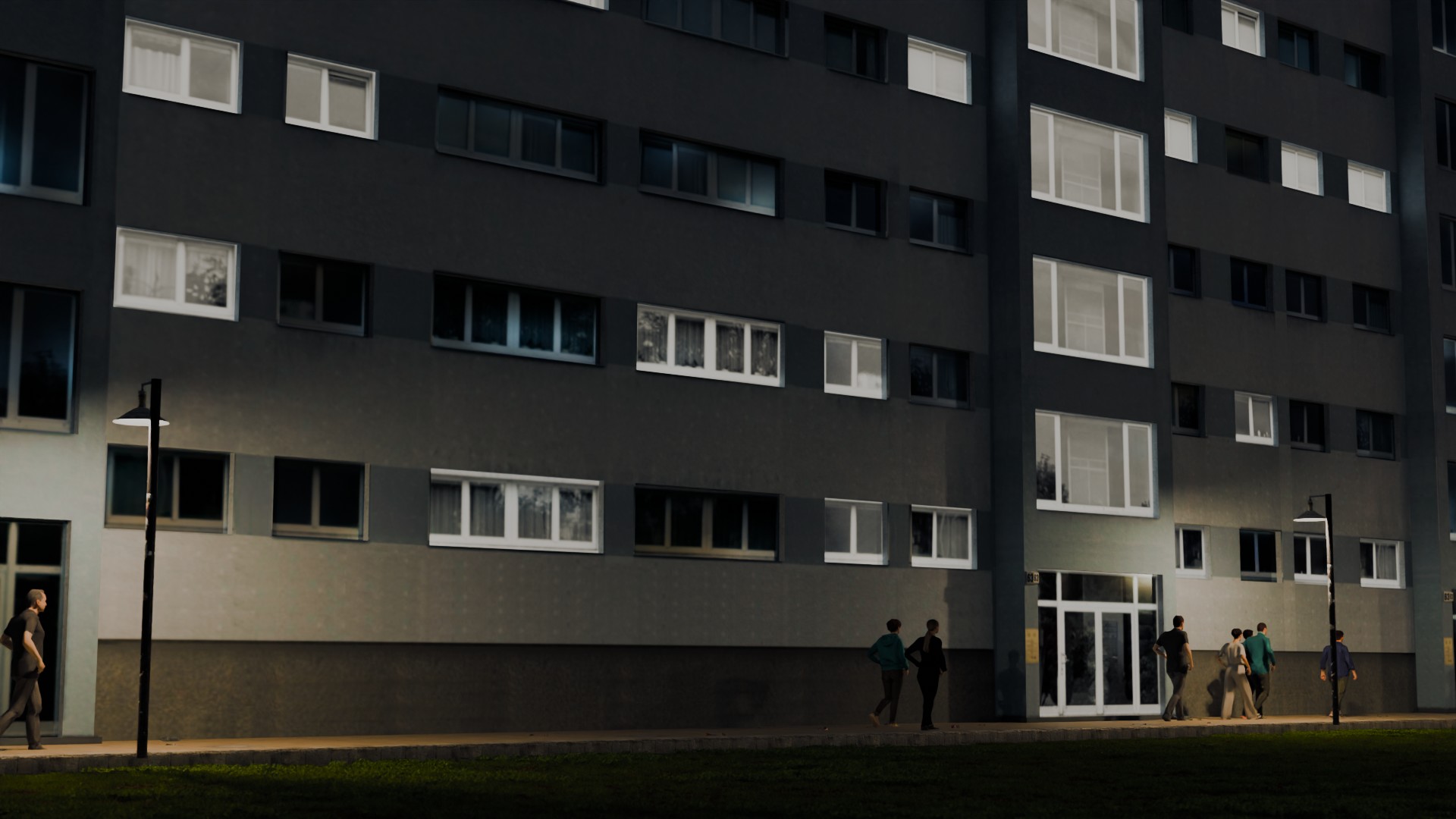 Zuvor habe ich echte Lichter für die Fenster verwendet. Auf Empfehlung von Faba habe ich nun jedoch einen Emission Shader genutzt. Das bringt tatsächlich Vorteile mit sich, wie zum Beispiel mehr Kontrolle über das Material. Es ist genauer angepasst und ich muss nicht so viele Lichter bearbeiten.