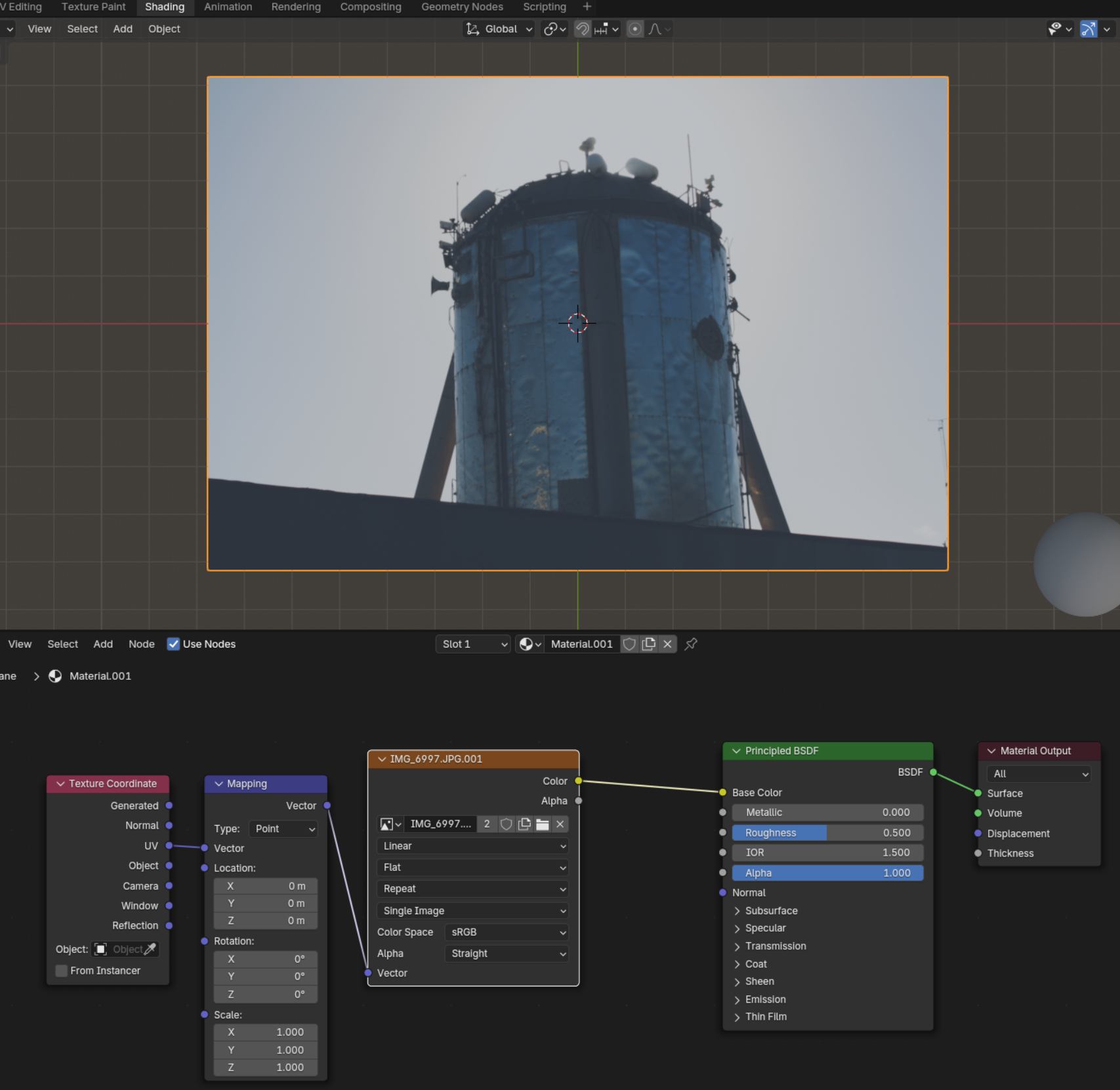 Wenn die Farben beim Entgültigen Renderung nicht verzerrt werden sollen, musst du noch die Beleuchtung und World Einstellungen ändern. Für Tranzparenz musst du den Alpha Socket vom Texture Node mit dem vom Principled BSDF verbinden.