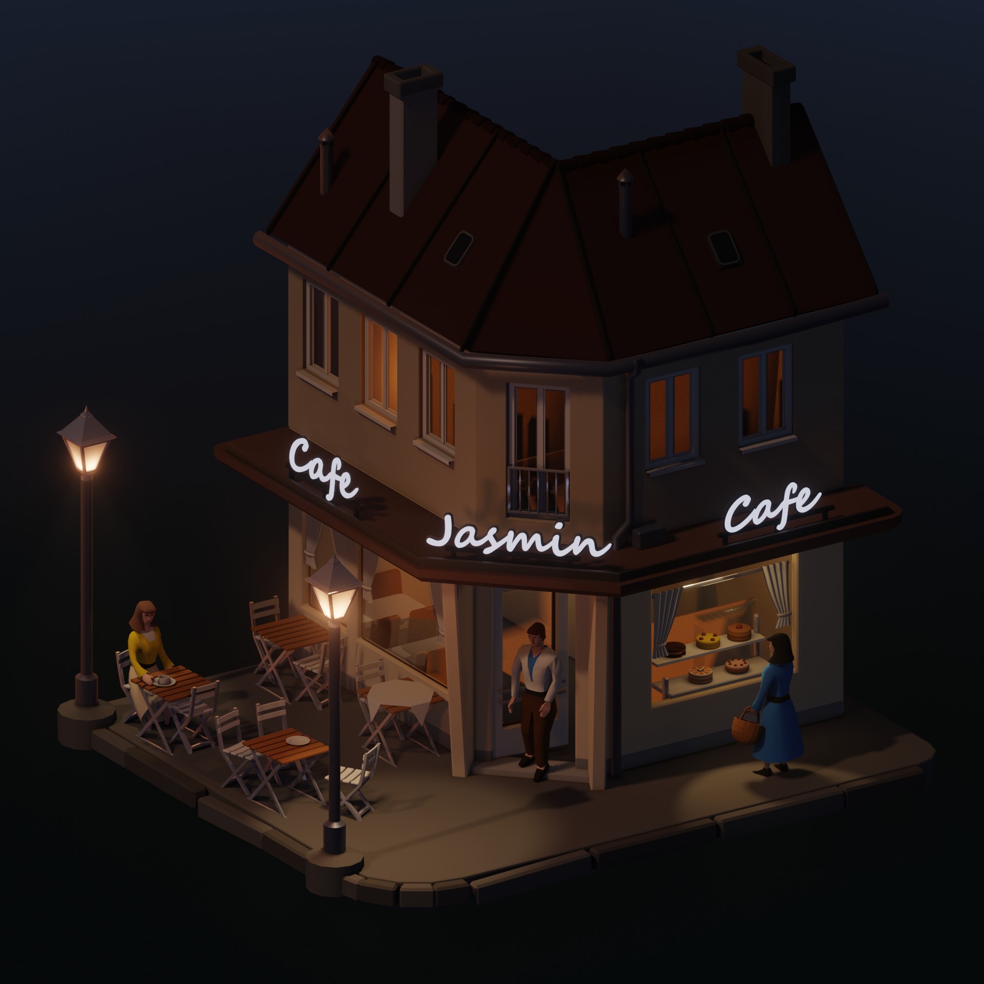 Das Cafe Jasmin gibt es wirklich. Es ist eines der letzten Cafes im Stil der 1950er Jahre in München. Ich habe das Haus allerdings verkleinert, Laternen und Tische auf der Straße dazu erfunden. Also Alltag durch die nostalgische Brille, Gurkenbier.