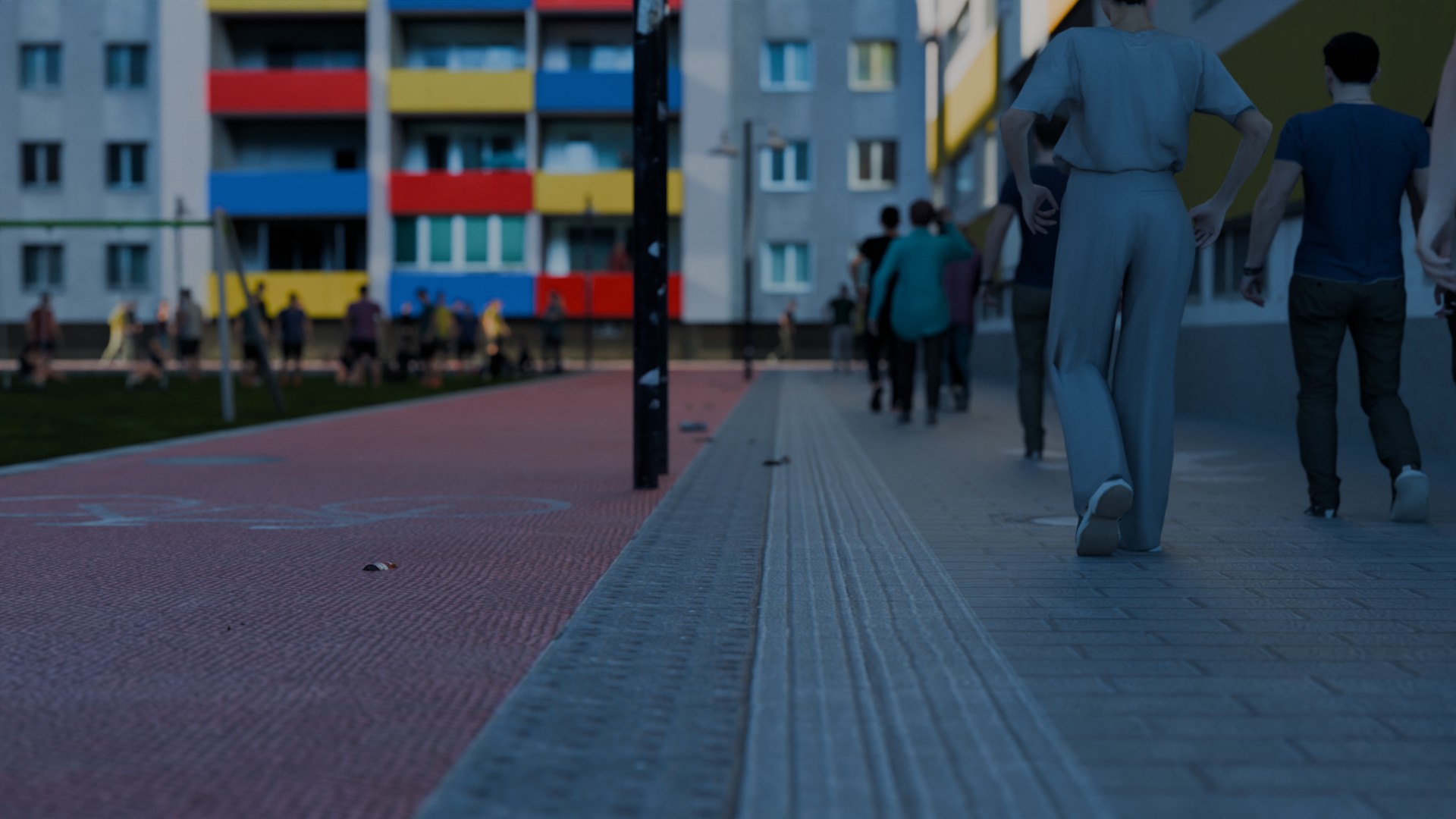 Außerdem wurden die Gehwege mit Bordstein und einem Bereich für Fahrräder neu erstellt. Diese werden ebenfalls im Asset Pack enthalten sein.