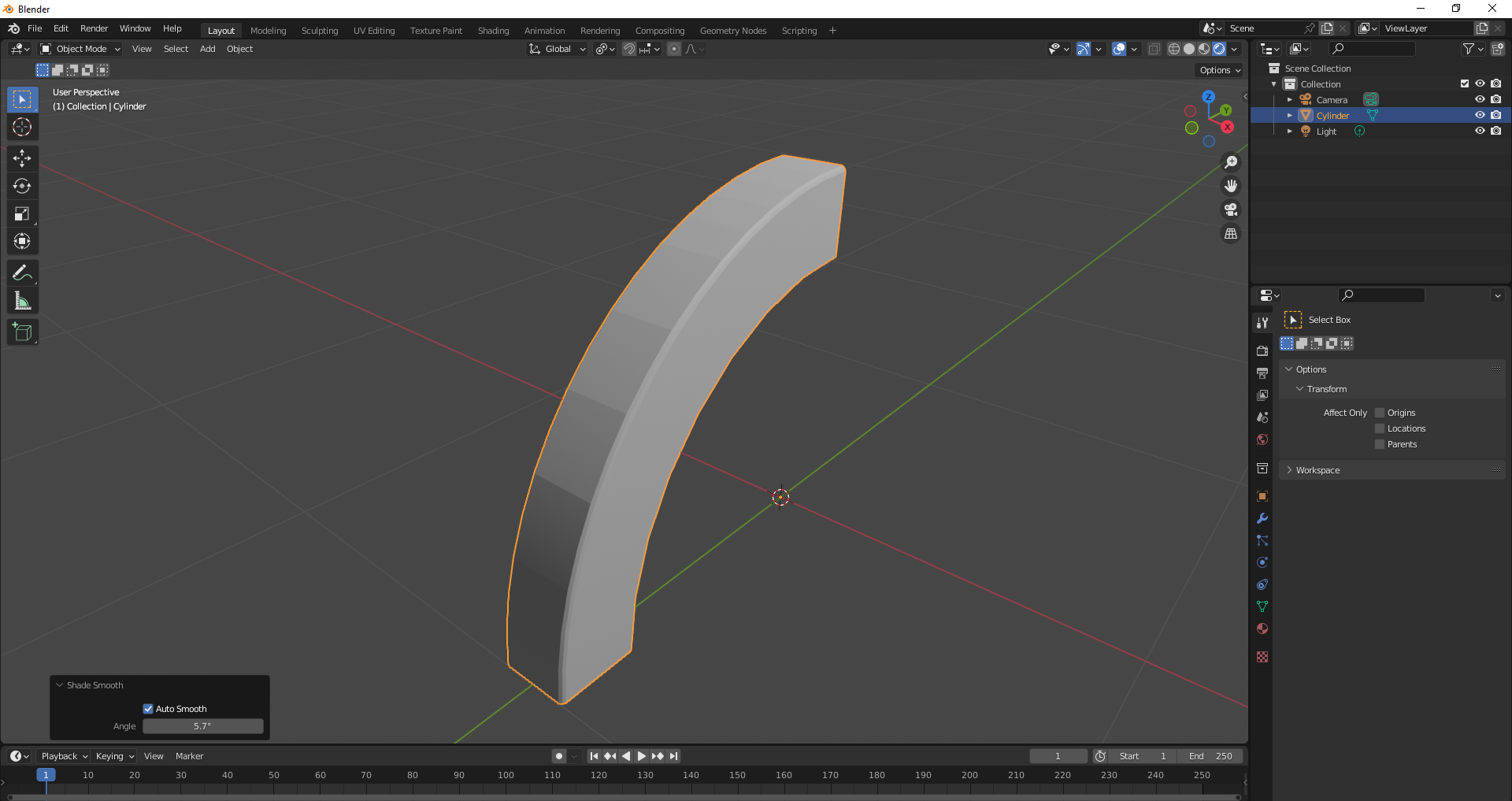 6. Shade Smooth    Jetzt kannst du Shade Smooth aktivieren und hast einen schönen Bogen.