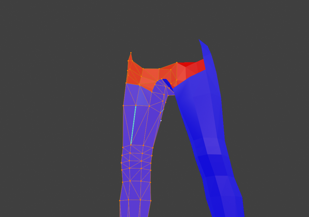 Diese blauen Kanten sind als Sharp, also scharfe Kante markiert, das kann die Darstellung auch beinträchtigen, da man auf ner Hose normal keine scharfen Kanten hat. Einfach mal im edit mode alles auswählen, strg+e > Clear Sharp...