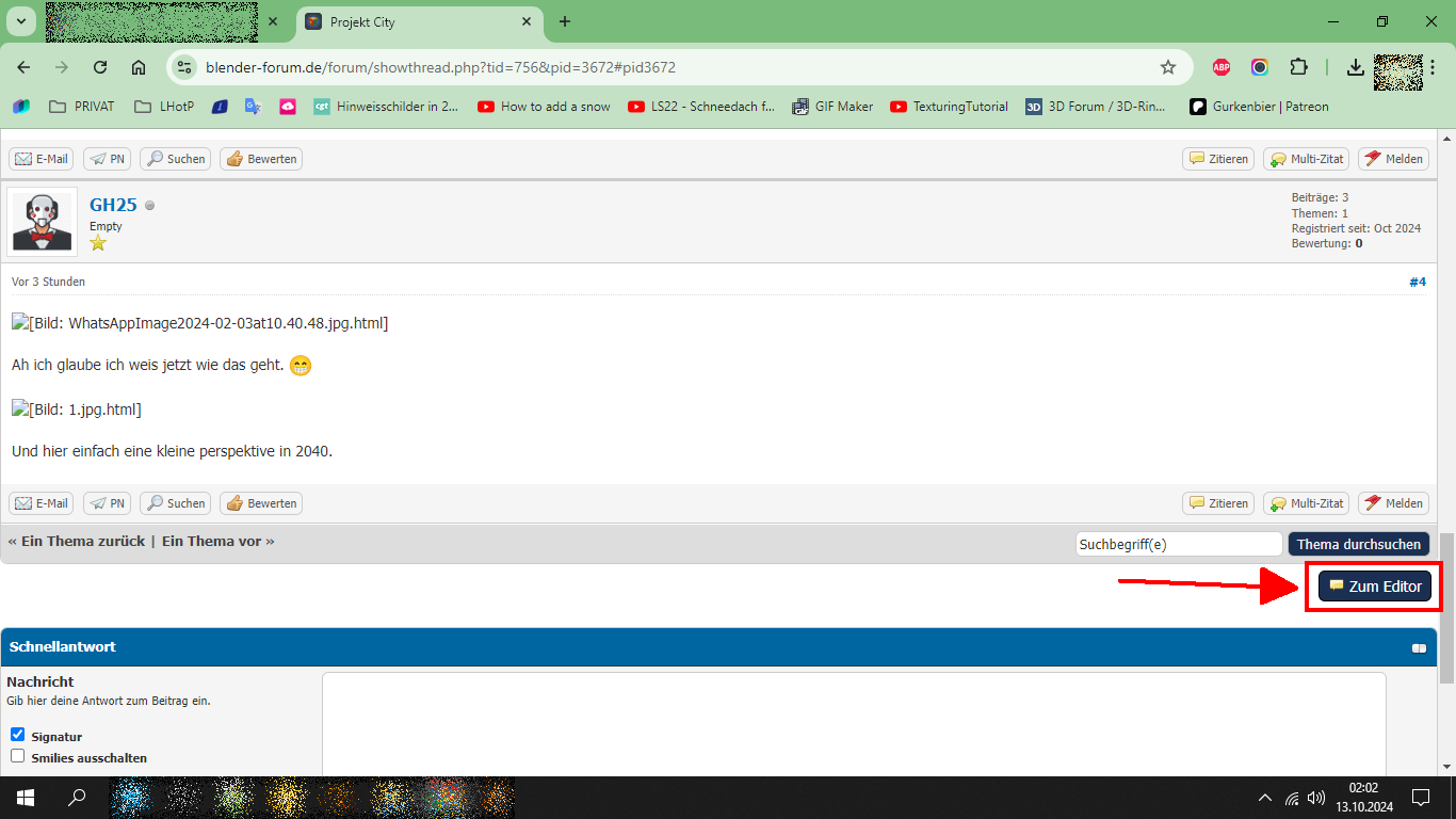 • Erstelle ein Thema oder antworte auf ein Thema mit einem Klick auf den Editor-Button