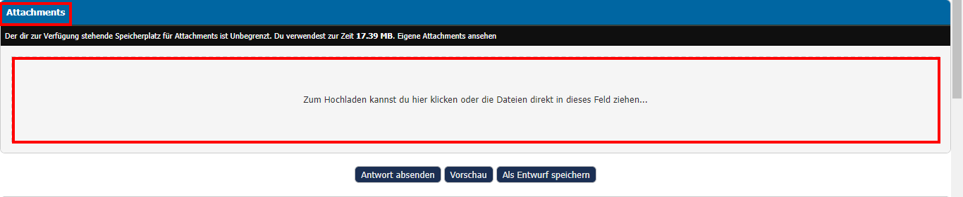 • Scrolle nach unten bis zum Attachments-Bereich und klicke einfach in den gekennzeichneten Bereich