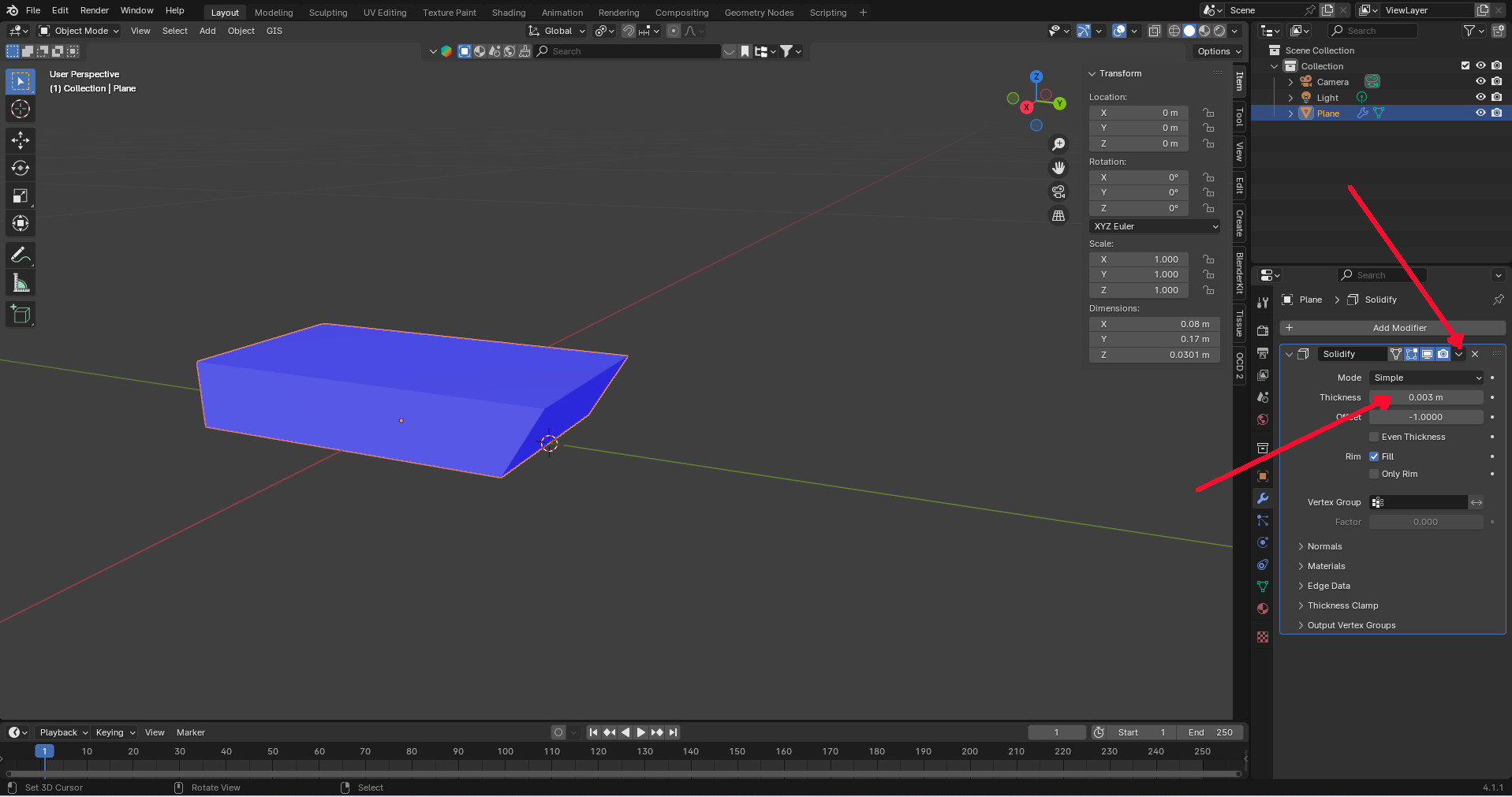 - im Modifier-Panel den Solidify-Modifier auswählen