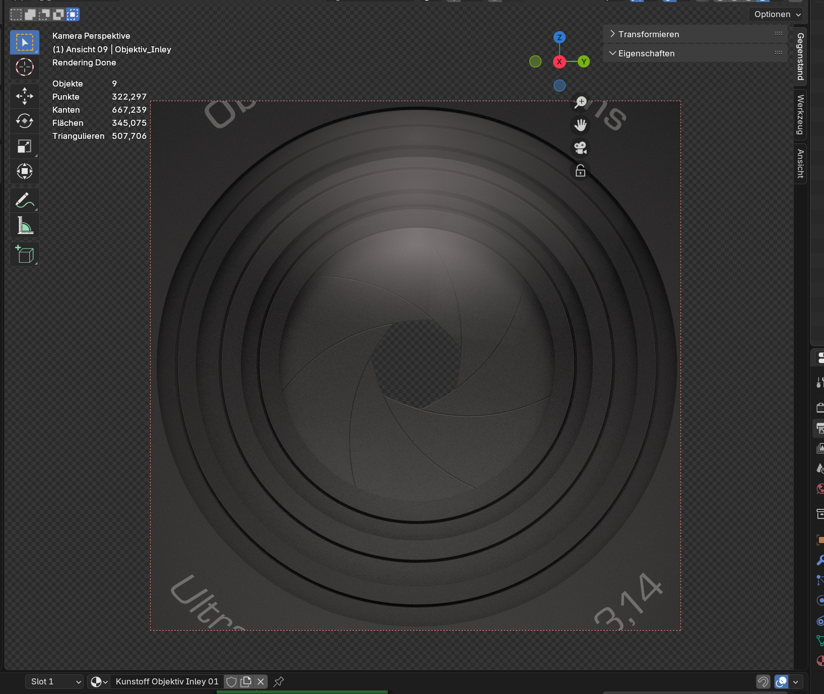 ich möchte eine Kamera rendern. Diese hat vier Glaslinsen, durch die die Lichtstrahlen dringen müssen.