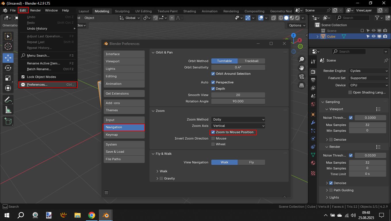 Ich habe schon einiges gegoogelt aber ohne Erfolg. Ich möchte Blender so einstellen das es automatisch zu der Position des Cursor (Mauszeigers) scrollt. (Mausrad) Gibt es da eine Möglichkeit?
