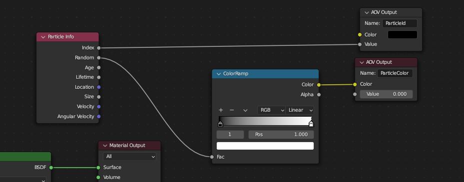 Ich habe noch einen anderen Ansatz verfolgt. Nämlich im Shading Node setup kann man mit dem Particle Info Node den
