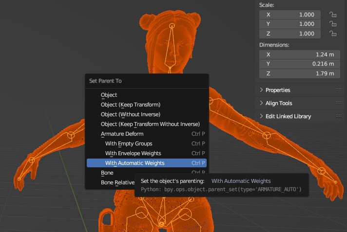 Also ich habe eigentlich die üblichen Schritte befolgt und dann Parenting mit "Automatic Weights"