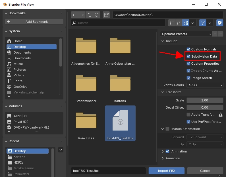 ich möchte Objekte in Blender importieren, um die Sculpting Funktion zu nutzen. Seit 24 Jahren arbeite ich beruflich mit 3ds MAX und habe schon oft Objekte in diverse andere Software importiert. Leider gelingt mir das bei Blender nicht. Als Test habe ich es mit einer unterteilten Box versucht. Irgendwie bleiben die Unterteilungen auf der Strecke (siehe Screenshot). Was mache ich falsch? Auch habe ich einen Subdivision Modifier probiert. Der unterteilt mir nur die vier umlaufenden Flächen. Die inneren Hauptflächen werden nicht unterteilt, obwohl es sich um ein geschlossenes Mesh mit verschweißten Scheitelpunkten handelt.