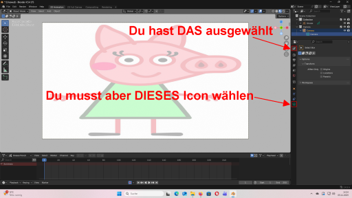 Drawtools - Knut - 04.11.2025 Hallo Leute, ich bin ein Blenderanfänger, der sich brav durch ein Riggingtutorial beißt und habe eine Frage, die vermutlich so simpel für die meisten zu beantworten ist, dass es beinahe peinlich ist. Aber naja, meine Suche ergab leider keinen Treffer. Und zwar fehlen mit in der linken vertikalen Leiste diverse Tools, mit denen ich zum Beispiel eine Kurve in 2D erstellen könnte. Im Tutorial-Video befindet sich zwischen dem "Eyedropper" und "Interpolate" 6 Tool, wie Kurve, Kreis und Viereck etc. Bei mir kommt unter dem "Eyedropper" direkt das "Interpolate"... Die 3D-Kurve habe ich Objektmodus schon gefunden, ist aber nicht das, was ich suche. Gehabt euch wohl Knut RE: Drawtools - BlenderFan - 05.11.2025 Bitte mal ein Screenshot posten. Und mit welcher Blender-Version arbeitest du? Gruß RE: Drawtools - Knut - 05.11.2025 Danke die schnelle Antwort! Ich arbeite mit 4.5. Ich habe das Anfängerrätsel lösen können. Über das Icon, welches ein Plus aufweist komme ich durch längeres Drücken zum gewünschten Werkzeug. So sieht die Leiste aus im Video: https://ibb.co/jPL3wHCd Und so bei mir: https://ibb.co/LDzr5TWH Da ich jetzt aber rankomme, ist das jetzt nicht mehr so wichtig, aber die nächste Frage komt bestimmt. Ich versuche mich aber, so gut es geht, durch den Sumpf meiner jetzigen Unwissenheit selber zu kämpfen. RE: Drawtools - BlenderFan - 05.11.2025 Hi! Schön, dass du es gefunden hast! Die Blender-Version im Video-Tutorial ist 3.6.1 Da sind die Werkzeuge auch wie im Video gezeigt, vorhanden. Es ist evtl. ratsam bei älteren Tutorials (zuerst einmal) auch die dort verwendete Blender-Version zu benutzen. Blender hat in den letzten größeren Version(en) auch einiges an der UI gebastelt und vermeintlich optimiert. Das kann schon zu Verwirrungen führen. Bleib dran... und weiter so! Gruß RE: Drawtools - Knut - 05.11.2025 Hab ich gedownloaded, aber irgendwie lässt es sich nicht installieren. Na ja, nächstes großes Problem identifiziert. Schwierig zu benennen: Manchmal sind die Kameraeinstellungen einfach nicht da. Manchmal schon, zumindest am Anfang. Habe mein Projekt jedes Mal neu gestartet und auch Blender zurückgesetzt, damit ich damit wieder arbeiten kann. Kein Plan... So soll es sein: (Das rechte Fenster an der Seite ist gemeint, wo ich das Hintergrundbild anpassen kann unter Camera). https://ibb.co/Qjhb6bRq Tja, und nach einer Weil sieht es dann so aus: https://ibb.co/BV4V7t6N Es ist extrem merkwürdig. Alles identisch ansonsten. Gerade wieder Blender zurückgesetzt, aber es bleibt so. Gefühlt alles probiert. Ich bleibe natürlich dran. Vorhin ein Nickerchen gemacht und im Traum am Schweinchen weitergearbeitet. RE: Drawtools - BlenderFan - 05.11.2025 Hi! Ich lade immer eine "portable" Blender - Version herunter, extrahiere diese und starte direkt aus dem Ordner heraus. Dann brauche ich nichts installieren. Und wie es aussieht, hast du im Properties-Fenster das Tools-Icon aktiviert anstatt das Camera-Icon. Gruß RE: Drawtools - Knut - 05.11.2025 Oh Mann, ich hätte schwören können, dass ich alles, wirklich alles x-mal aufmerksam ausprobiert habe. Ich kann meiner Wahrnehmung einfach nicht trauen. Jetzt habe ich es aber bewusst verankert! Danke vielmals! Das war mein heutiges Hauptproblem. Gleich mal die andere Version downloaden^^ RE: Drawtools - Knut - 05.11.2025 Großartig! Jetzt alles so wie in dem Video. Das ist sehr motivierend. RE: Drawtools - BlenderFan - 06.11.2025 Als kleine Zusatzinformation für interessierte Mitleser dieses Threads. Es geht um diese Tutorial-Reihe zum Thema Grease Pencil: Gruß RE: Drawtools - Knut - 06.11.2025 Ja, genau, es geht ums Schwein! Wenn ich aufstehe, bearbeite ich das Schwein. Wenn ich Nachhause komme, bearbeite ich das Schwein. Vorm Schlafen gehen bearbeite ich das Schwein. Ich träume vom Schwein. Ich denke ans Schwein. Ich bin das Schwein. Oink Oink! (Interpretieren Sie das Gedicht von Knut Knutson "Das Schwein".) Heute habe ich doch mal selber ein Problem gelöst, nachdem ich ausversehen mit shift+tab Snap aktiviert habe, was dazu führte, dass alles an Ort und Stelle blieb. Nun habe ich aber zwei weitere Probleme: 1. Das Hintergrundbild verdünnisiert sich gerne. Heute beim Starten war es weg, aber ich konnte es wieder neu laden. Nun ist es wieder verschwunden, während meiner Arbeit, aber lässt sich nicht neu laden. 2. Lässt sich nichts mehr editieren, geschweige denn auswählen. So sieht es aus: https://ibb.co/ksj7d67z Jetzt werde ich vermutlich zum drölfzigsten Mal neu anfangen. In vielen Bereichen habe ich mittlerweile schon Routine ![]() (15 Minuten später) 3. Beim Zeichnen kommt nur noch ein dünne Linie, die die Radiuseinstellung ignoriert (auch schon vorher einmal vorgekommen). https://ibb.co/M5VrCb5m Auf jeden Fall bin sooooo knapp vorm Abschluss des ersten Videos. In nicht allzu ferner Zukunft, kann ich hoffentlich den helfenden Händen mein fertiges Projekt, also den Zweck, dieser Schweinerei präsentieren. RE: Drawtools - BlenderFan - 06.11.2025 Hi! Zu Bild 1 Du hast im Outliner (Fenster rechts oben) irgendwie die Animation selektiert. Sollte nicht "Stroke" selektiert sein? Und außerdem habe ich in Video 1 noch gar nichts mit Animation gesehen. Woher kommt das? Und wechsele wieder in den Draw Mode. Du bist laut Bild 1 im Edit Mode (Sollte erst in Video 2 dran kommen )Zu Bild 2 Du hast links den Pen aktiviert. Auch das kommt eigentlich in Video 1 nicht vor. Aktiviere wieder den passenden Linienstil. Bin heute Abend erst wieder dabei (ich gehe das Tut jetzt mal selber durch)... Gruß RE: Drawtools - Knut - 06.11.2025 Großartig! Also, dass du das Tutorial durchgehen magst. Ob die Tipps funzen kann ich noch nicht sagen. Problem 3 hast du überlesen oder keine Peilung? Ich würde jetzt echt gerne weiter forschen, aber das wird erst sehr spät... :/ Na dann! Bis spätaaar! RE: Drawtools - BlenderFan - 06.11.2025 Hi! Problem 3 ist meiner Meinung nach die Einstellung des Pens als Zeichenw