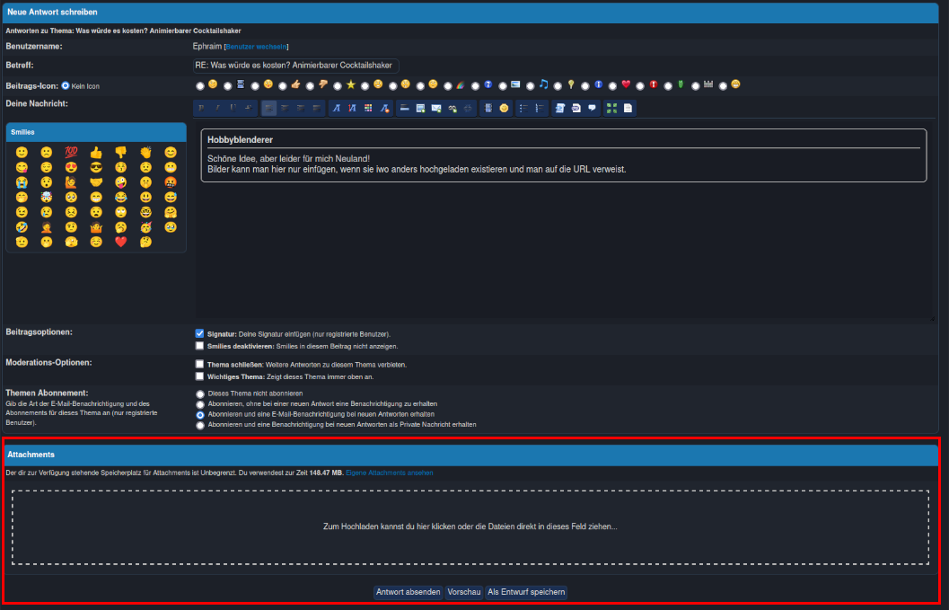 Was würde es kosten? Animierbarer Cocktailshaker - Martins.Cocktails - 24.11.2023 Hallo zusammen, Ich heiße Martin und erstelle mit after effects Tutorials zu Cocktails. Hierbei kam mir folgende Idee, da man in after effects 3D Objekte einbinden kann: Ich würde gerne einen animierbaren Cocktailshaker in die Videos einbauen, der quasi als mein "Gehilfe" die Cocktails mit erstellt. Er bräuchte also Cartoon-Arme und Beine und ein Cartoon-Gesicht auf dem Shaker selbst. Das Animieren (rigging) traue ich mir selbst zu. Bräuchte also "nur" die Figur incl bones, um ihn animieren zu können. Wäre jemand hier bereit, dies zu produzieren und was würde es kosten? Besten Dank schon mal vorab. VG Martin RE: Was würde es kosten? Animierbarer Cocktailshaker - Martins.Cocktails - 24.11.2023 Hallo Hobbyblenderer, Danke für die rasche Antwort. Zur besseren Eingrenzung: Es muss und sollte nicht alles Cartoon sein. Der Shaker selbst könnte real sein und gibt's als 3D-Objekt auch für kleines Geld fertig zum Download. Daran müssten dann Arme und Beine "drangeflanscht" werden. Bliebe das Gesicht und die Bones, um Bewegungen zu machen. So ist es vielleicht präziser dargestellt. Besten Dank für den Hinweis. VG RE: Was würde es kosten? Animierbarer Cocktailshaker - Martins.Cocktails - 24.11.2023 Ganz genau. Ein typischer Cobbler Shaker. .Das ist einer mit einem halbrunden Deckel. Könnte wie beschrieben schon ein reales 3D Ding sein. Weiß nicht, wie ich hier ein Bild einfügen kann. Dein Youtube Video kommt dem, was ich meine, aber schon sehr nahe. Das Ganze soll dazu dienen, im "Dialog" mit dem Shaker das Ganze lustig zu verpacken. Daher sollte es auch seine Lippen und Augen bewegen können. RE: Was würde es kosten? Animierbarer Cocktailshaker - Martins.Cocktails - 24.11.2023 Trotzdem Danke. Durch unseren Dialog konnte ich es genauer beschreiben. Wünsch Dir schöne entspannte Wochen im kommenden Weihnachtstrubel! RE: Was würde es kosten? Animierbarer Cocktailshaker - Martins.Cocktails - 24.11.2023 Cobbler Shaker Hier ein Beispiel eines Cobblers. RE: Was würde es kosten? Animierbarer Cocktailshaker - Ephraim - 25.11.2023 (24.11.2023, 10:46 PM)Hobbyblenderer schrieb: Bilder kann man hier nur einfügen, wenn sie iwo anders hochgeladen existieren und man auf die URL verweist. Nee, geht auch so. Aber nur im Editor, dort dann unter Attachments (Hätte es auch lieber anders, aber die Foren Software ist halt so): LG, Ephraim. RE: Was würde es kosten? Animierbarer Cocktailshaker - Faba - 25.11.2023 Die Badesalzbecher sind ja süß ![]() Ich kann mir vorstellen, dass das auch mit Cocktails lustig wird! RE: Was würde es kosten? Animierbarer Cocktailshaker - Martins.Cocktails - 25.11.2023 Ja das ist der Hauptgrund, warum ich es möchte. Da sind schon soviele Dialog- und Szenen-Ideen in meinem Kopf. Leider bekomme ich die Figur aber nicht hin. |