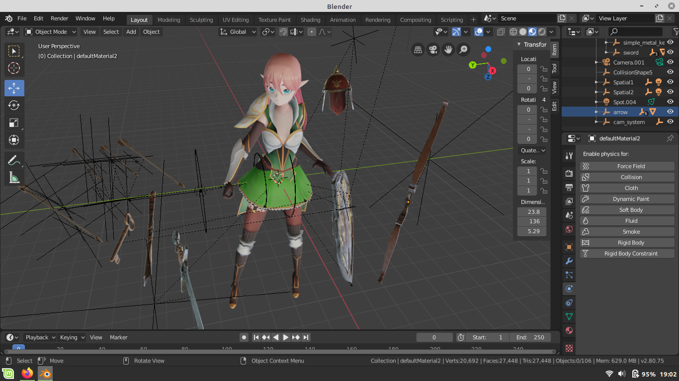 Glb Modell nicht sichtbar ... - rs_gaming - 08.10.2024 Hallo ! ... passend zu meinem ersten Thread vor einigen Tagen folgende Frage .. ich habe schönes Modell Glb, was in Godot einwandfrei läuft- Um es weiter zu animieren, lade ich es in Blender. ich sehe aber nichts außer einem Koordinaten Kreuz. Wie gesagt, warum mscht das Modell nicht auf. Andere Modelle Glb tun das ja auch ... Modell mfg RS RE: Glb Modell nicht sichtbar ... - rs_gaming - 09.10.2024 Ich habe jetzt das Modell in Godot als gltf exportiert und in Blender importiert. Dabei liegt das Modell erstmal 90 Grad verdreht. Die Waffen sind in ihrer Größe verändert, aber alles da. Wenn ich die vorhandene Animation abspiele, funktioniert das nicht. Da stimmen Einstellungen nicht. RE: Glb Modell nicht sichtbar ... - rs_gaming - 09.10.2024 RE: Glb Modell nicht sichtbar ... - rs_gaming - 09.10.2024 Habe jetzt das Modell als FBX geladen ... klappt ... |