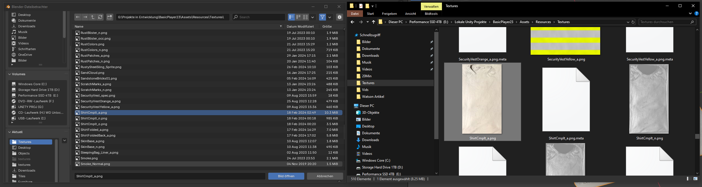 Blender öffnet ein Bild, das nicht existiert - SpaceTraveler - 28.03.2025 Hallo zusammen Ich bin gerade am verzweifeln. Seit dem Interface Update tue ich mich etwas schwerer mit Blender, aber gerade jetzt öffnet Blender Bilder (für eine UV-Textur), die gar nicht existieren. Ich habe das Bild "ShirtCmplt_a.png" das eine Stofftextur eines T-Shirts mit Kragen darstellt. Das Bild ist optimiert zugeschnitten, es gibt keinen Rand und keinen Aufdruck. Wenn ich es in Blender öffne, ist es aber ein komplett anderes Bild (die mehrfach überschriebene Rohdatei). Hier ist das Bild "ShirtCmplt_a.png" einmal im Explorer mit Vorschau und die Auswahl in Blender. Man sieht denselben Pfad und dieselbe Datei in beiden Fenstern: Hier sieht man, was Blender dann öffnet. Daneben habe ich das Bild in der Windows Bildanzeige geöffnet. Oben seht ihr den Dateiname zum Vergleich (ShirtCmplt_a.png). Was kann ich tun? Woher nimmt Blender dieses Bild her? RE: Blender öffnet ein Bild, das nicht existiert - Faba - 28.03.2025 sind das nicht 2 komplett verschiedene Pfade? Oder schaue ich falsch? RE: Blender öffnet ein Bild, das nicht existiert - SpaceTraveler - 28.03.2025 Tatsächlich, das Laufwerk ist ein anderes. Wie peinlich. Das erklärt alles. Ich dachte da ist eine Meta-Datei im Hintergrund auf die Blender zugreift anstatt auf die Bilddatei... |