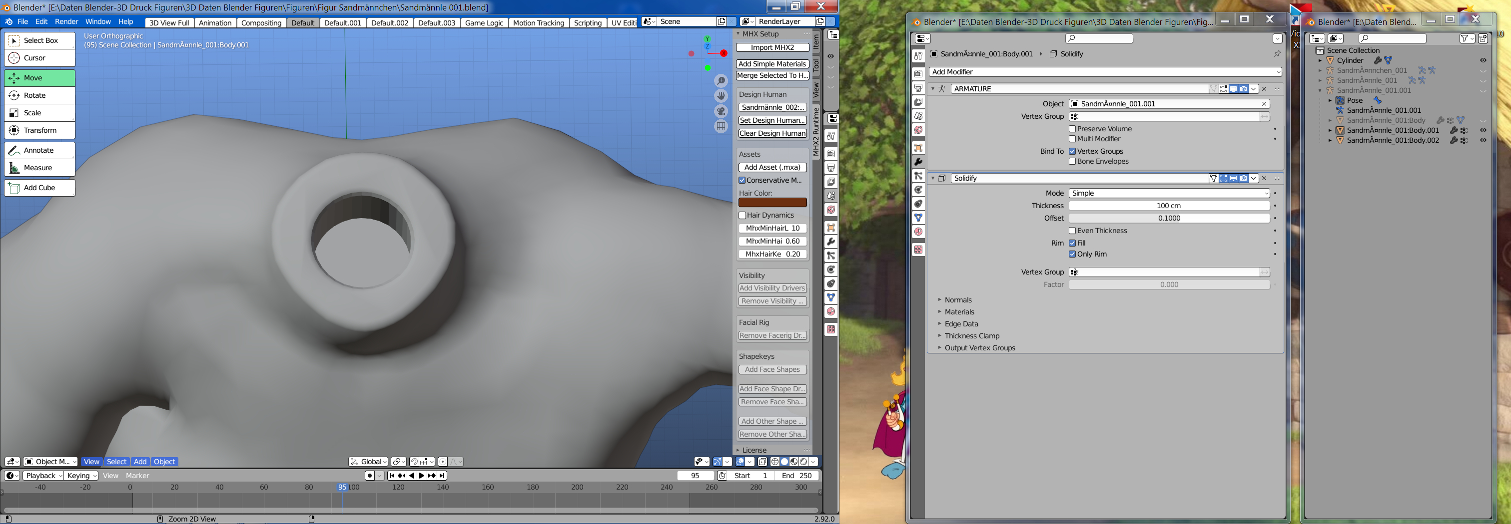 3. Die MHX2 Datei über "Import MHX2" in Blender importiert, dort wird die Figur dann mit 17999cm angezeigt!