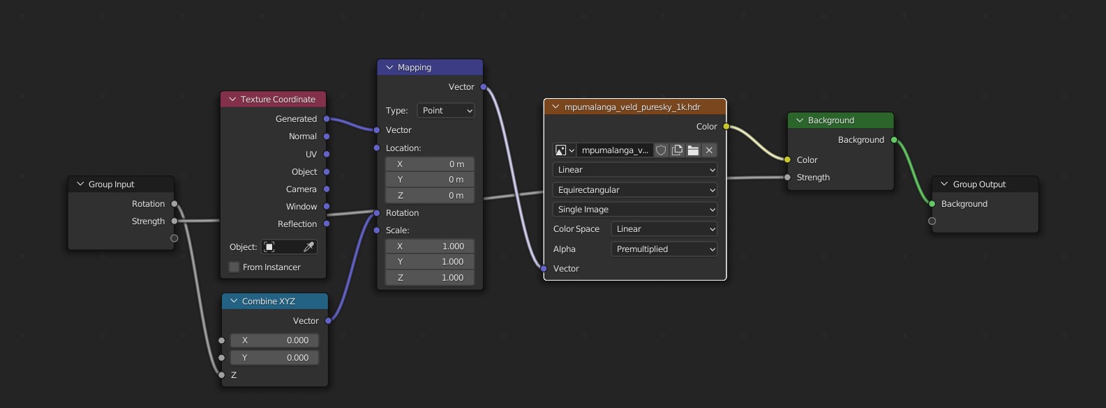 Die HDRI sind aus dem addon von PolyHaven. Also vom Setup sollte es eigentlich passen. Die Screenshots sind jetzt von der PureSky Textur. Die Nodes sehen doch beim Importieren alle gleich aus.
