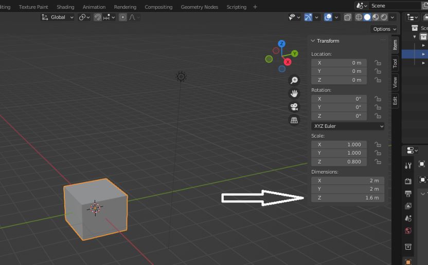 Auf der Tastatur …N… eingeben und bei Item…Transform… Dimensions … Z … die Größe auf 1.600 ändern. (Körpergröße)