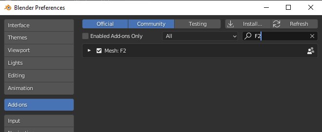 Als erstes "Mesh F2" ins Suchfeld eingeben und dieses Add-On mit einem Häkchen aktivieren.
