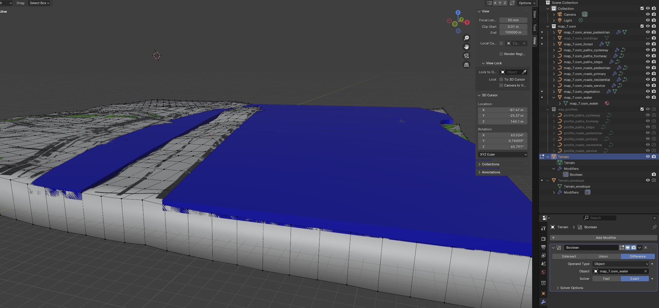 Hintergrund: Ich würde gerne beide Teile in unterschiedlichen Farben als Geschenk im 3D-Drucker drucken und den Fluss später in das Terrain kleben.