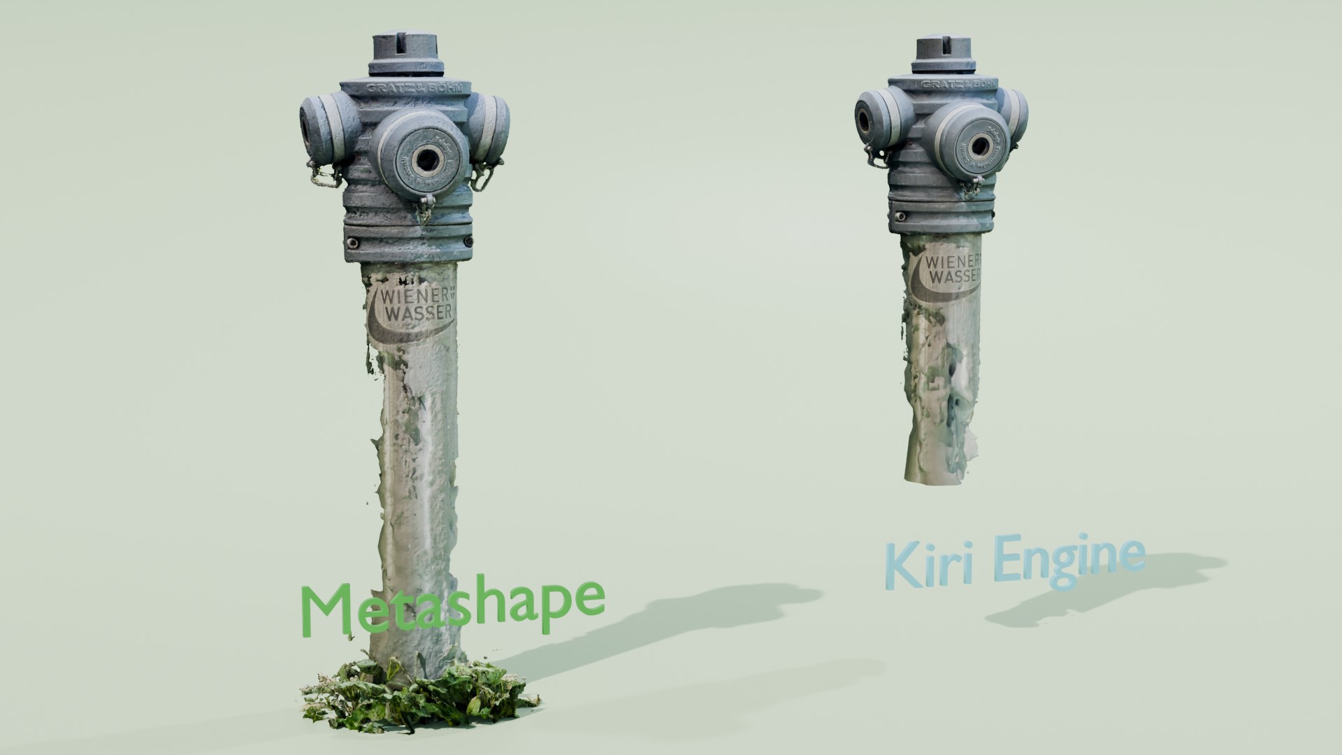 Normalerweise ist Metashape der klare Sieger, doch in diesem Fall wurden 189 Referenzbilder verwendet, was für beide Programme ausreichend war. KIRI Engine hat sich dabei überraschend gut geschlagen.
