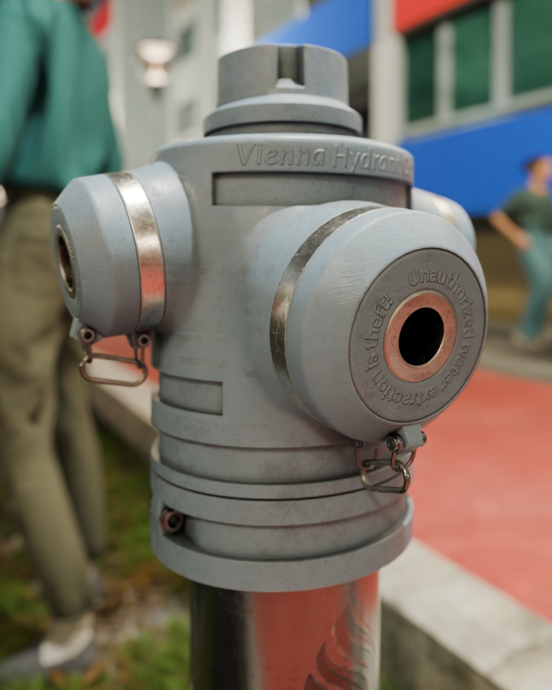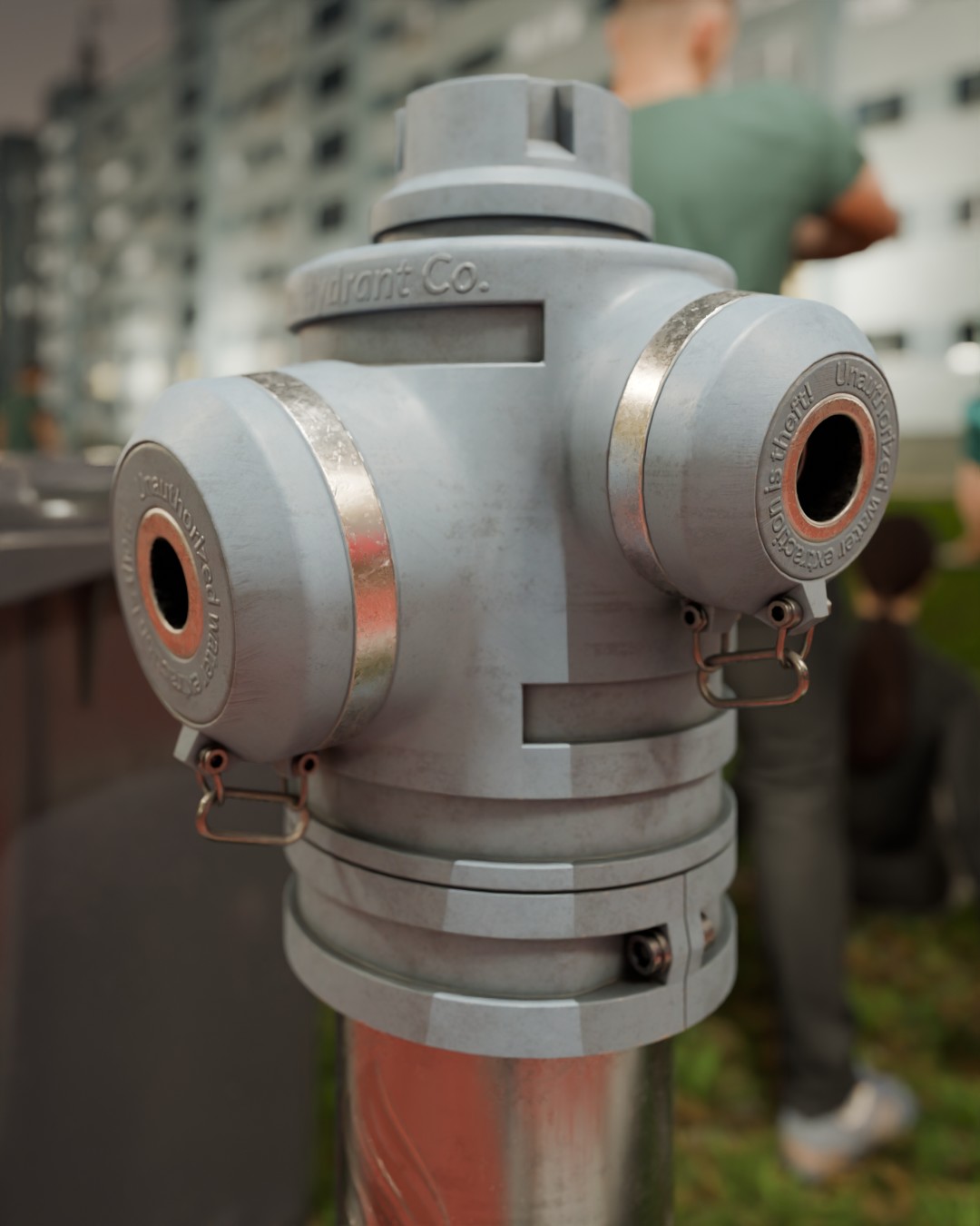 Hier sind noch ein paar Nahaufnahmen. Ich habe sogar Kratzer hinzugefügt, die beim Anschließen entstehen. Der Hydrant hält sich sehr nah an der Vorlage.