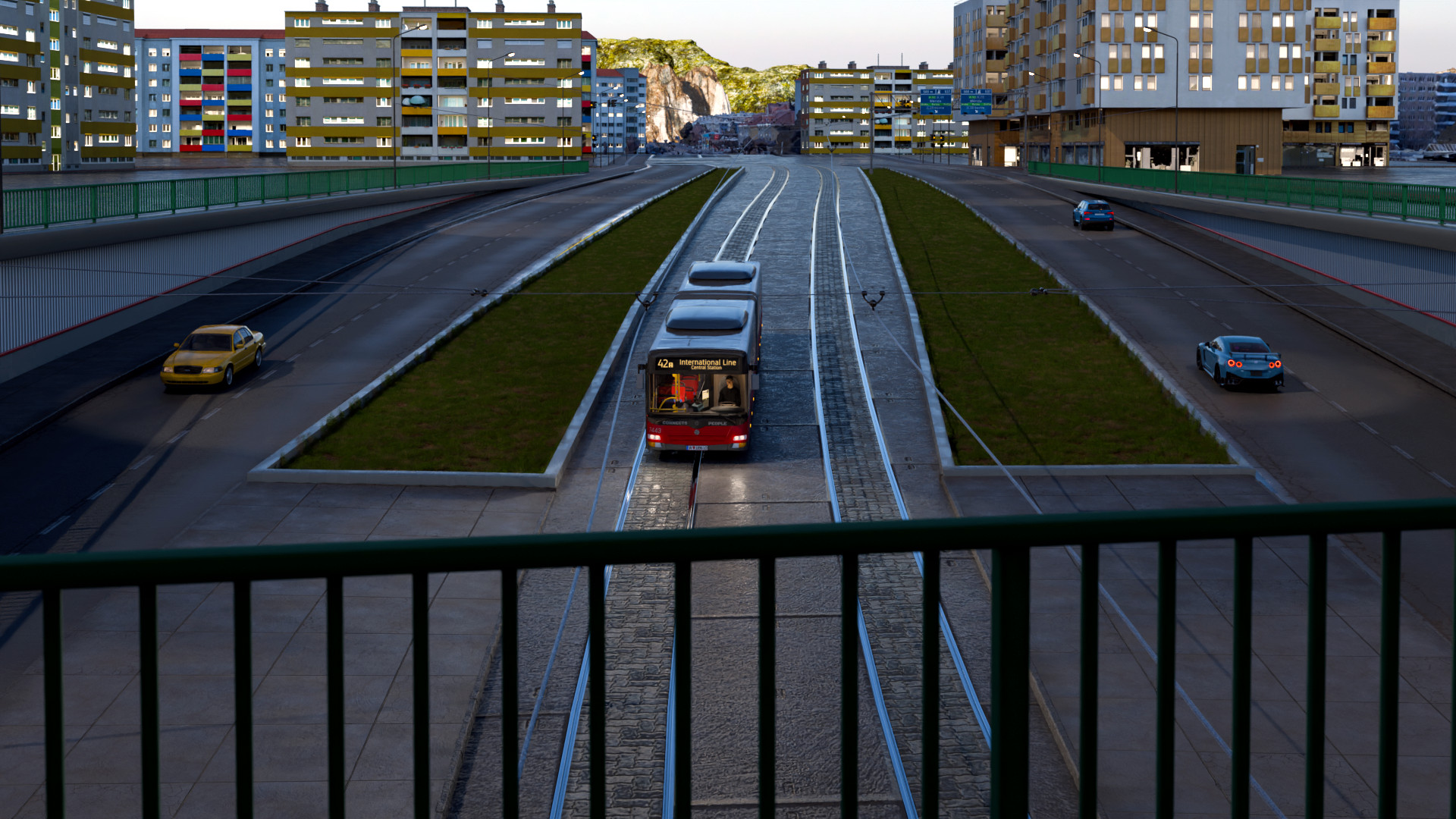 Ich habe nochmal mit ChatGPT gesprochen, und die Abstände der Schienen passen. Der Abstand zwischen den Schienen beträgt 1,4 Meter und zur Gegenspur 3 Meter. Vielleicht wirkt es durch die Textur etwas merkwürdig.