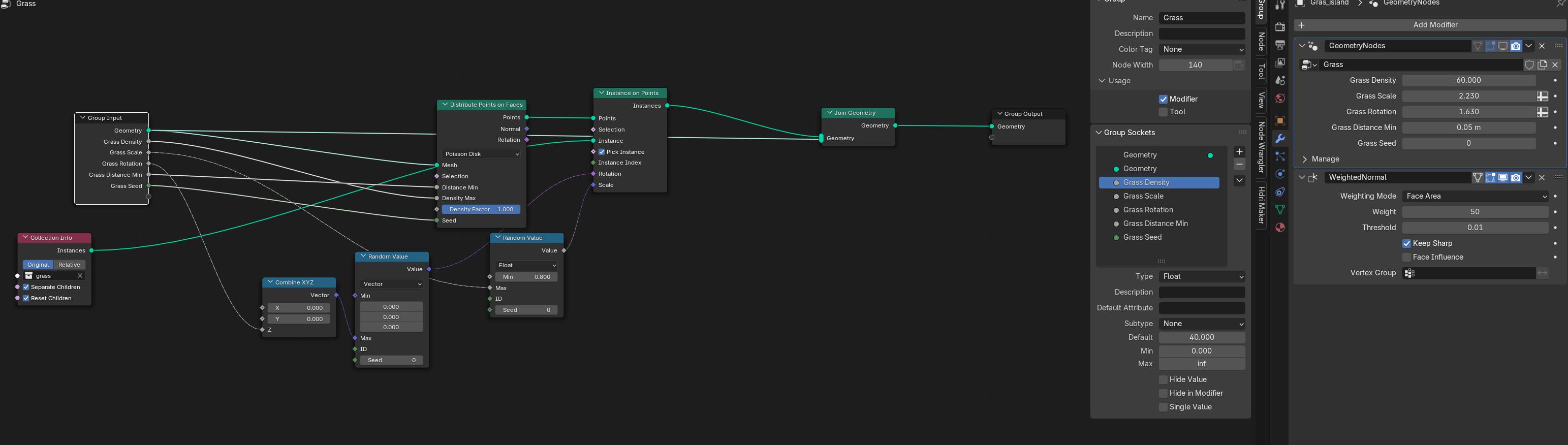Heute habe ich es endlich geschafft, mit Hilfe von Geometry Nodes Gras zu verteilen!