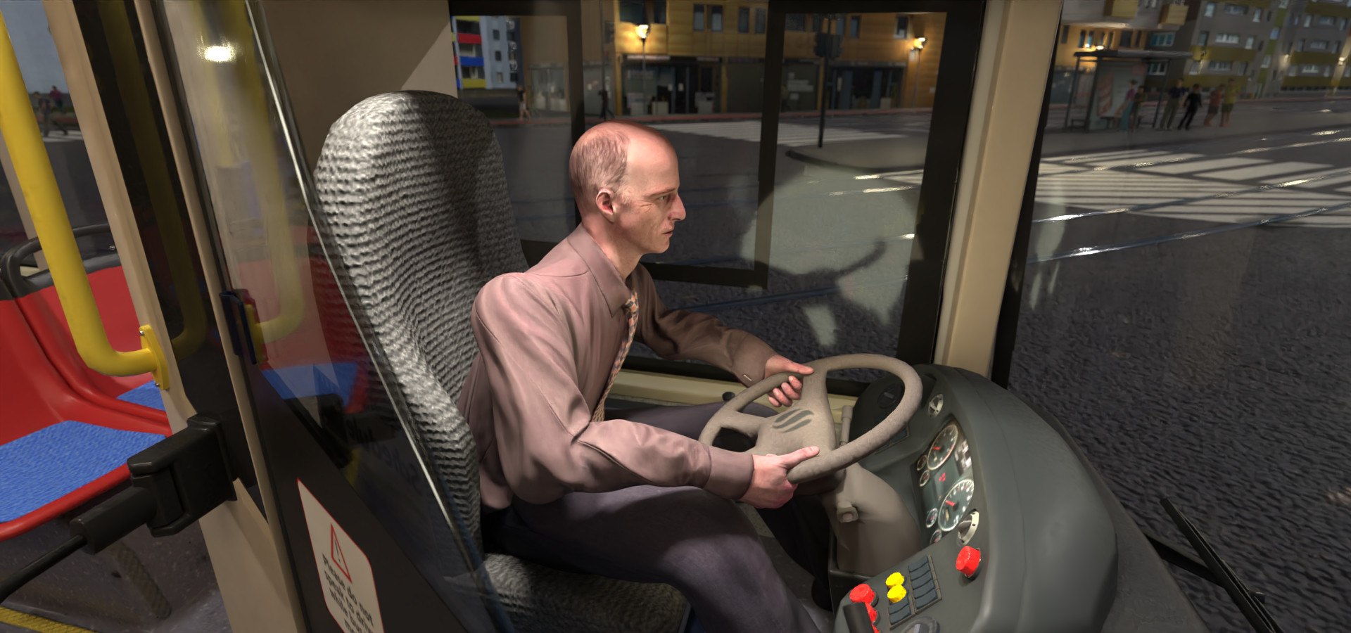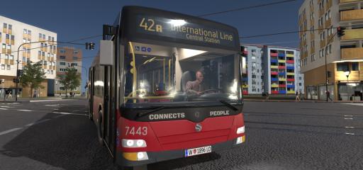 Das Einzige, was mir wirklich auffällt, ist das Abbiegen auf der Keuzung. Der Bus fährt erst eine leichte Kurve und biegt dann plötzlich stark ab, wobei er dem Auto neben ihm sehr dicht kommt. Gefühlt könnte diese Animation also deutlich in die Länge gezogen werden, damit der Bus früher mit dem Abbiegen beginnt. Dadurch würde auch das Auto nicht mehr so dicht kommen.