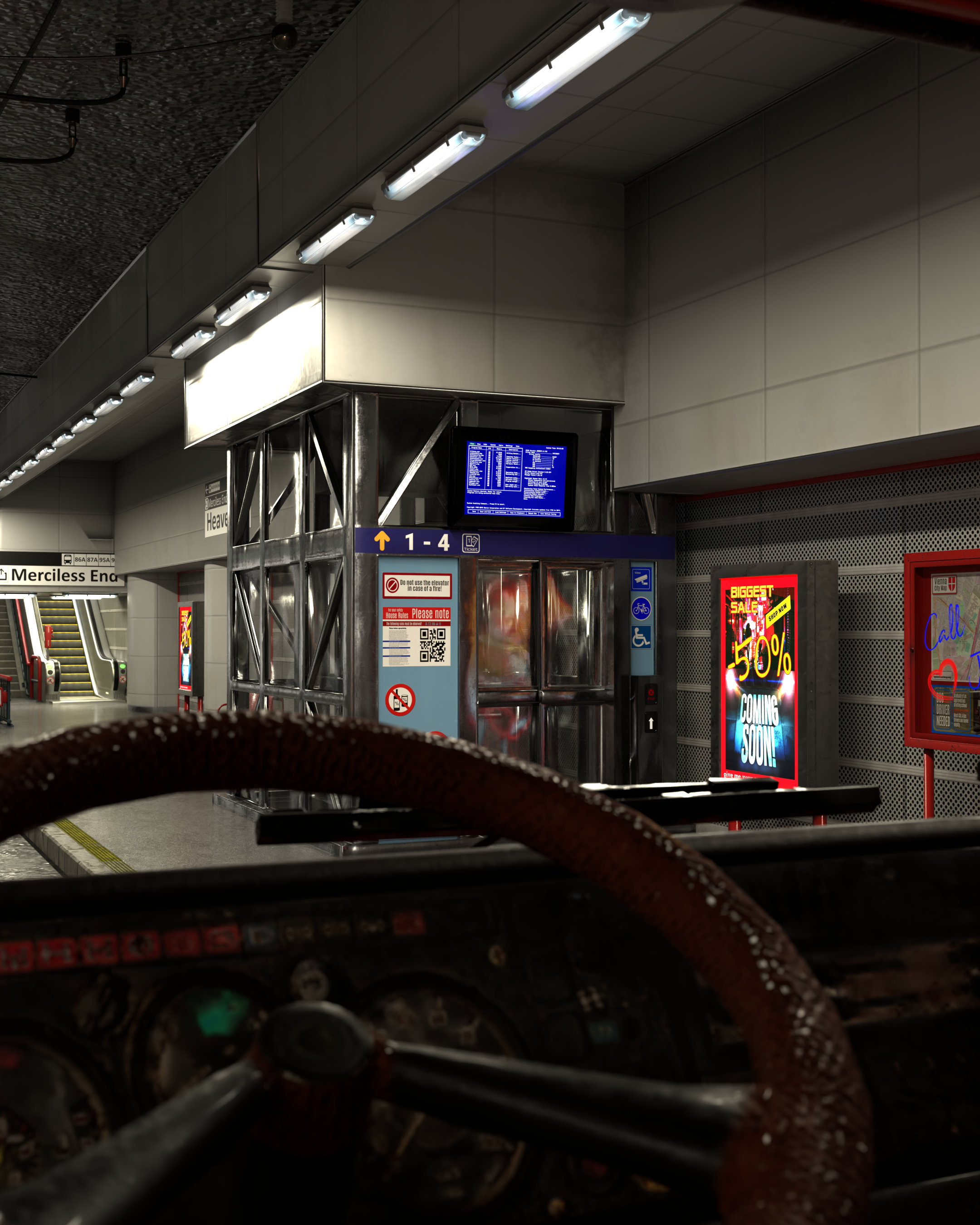 Ein paar Elemente stammen aber noch aus gekauften Assetpacks, deshalb kann ich sie so nicht mit hochladen. Die Deckenlichter, der Elektrokasten und eventuell noch ein paar Kleinigkeiten müssen also noch ersetzt bzw. selbst gebaut werden.