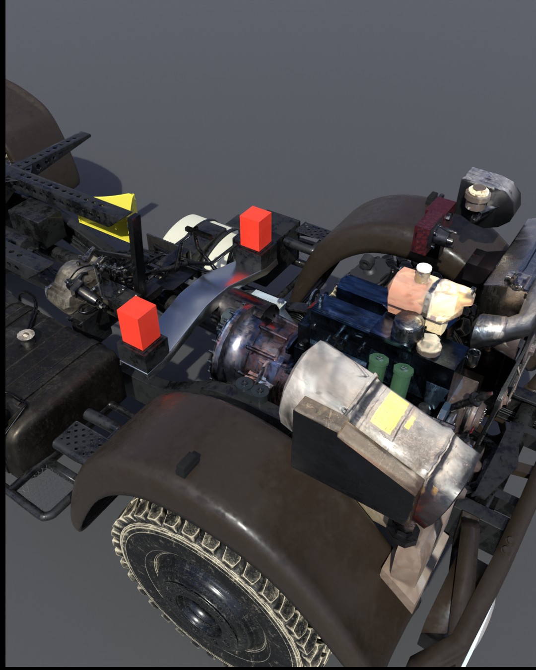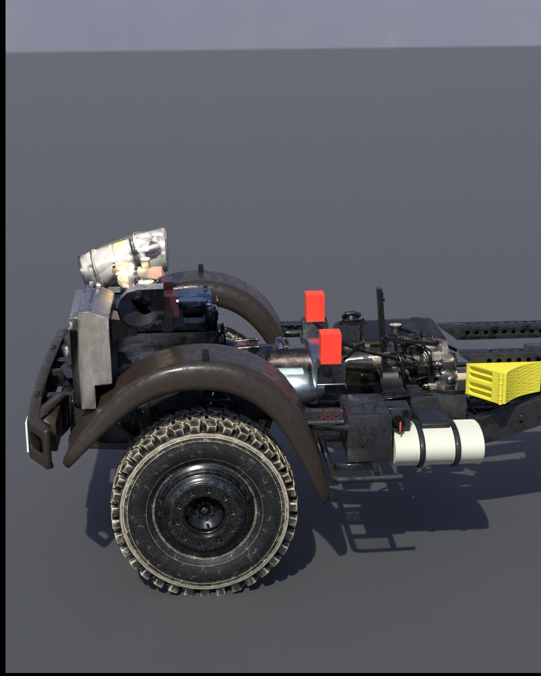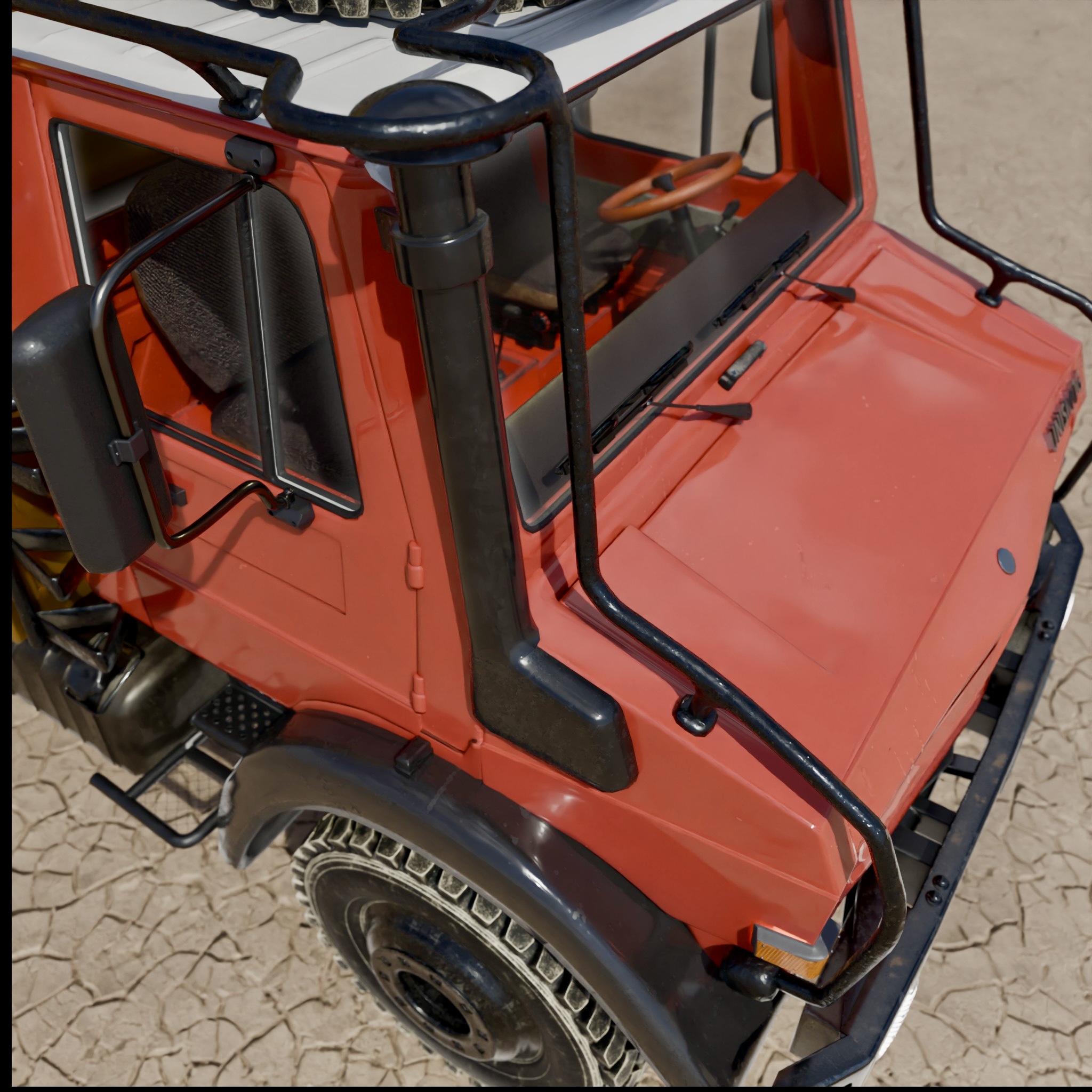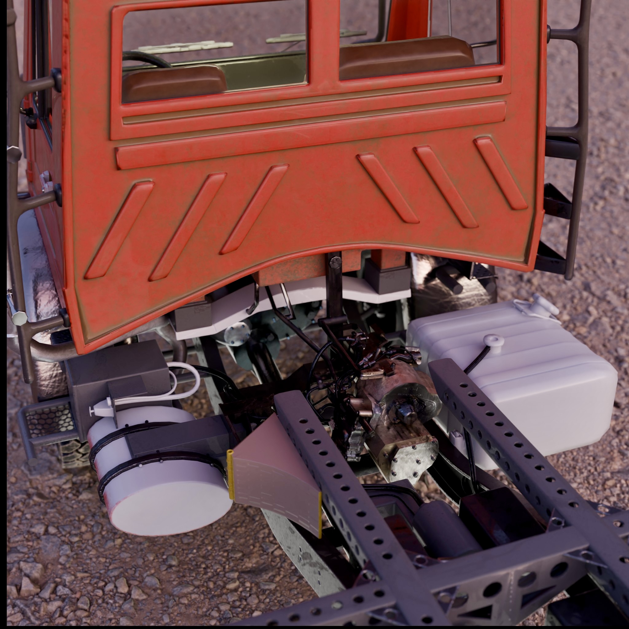 Anbei präsentiere ich meinen aktuellen Fortschritt beim 3D-Modell des Unimogs. Ich habe gestern die Renderings der Bilder erstellt und dabei bemerkt, dass ich komplett vergessen habe, das Gas-/Brems-/Kupplungspedal einzubauen. Das war wirklich ärgerlich, besonders weil ich bereits beim Texturieren war und einige Arbeitsschritte zurückgehen musste, um diesen kleinen, aber wichtigen Fehler zu korrigieren.