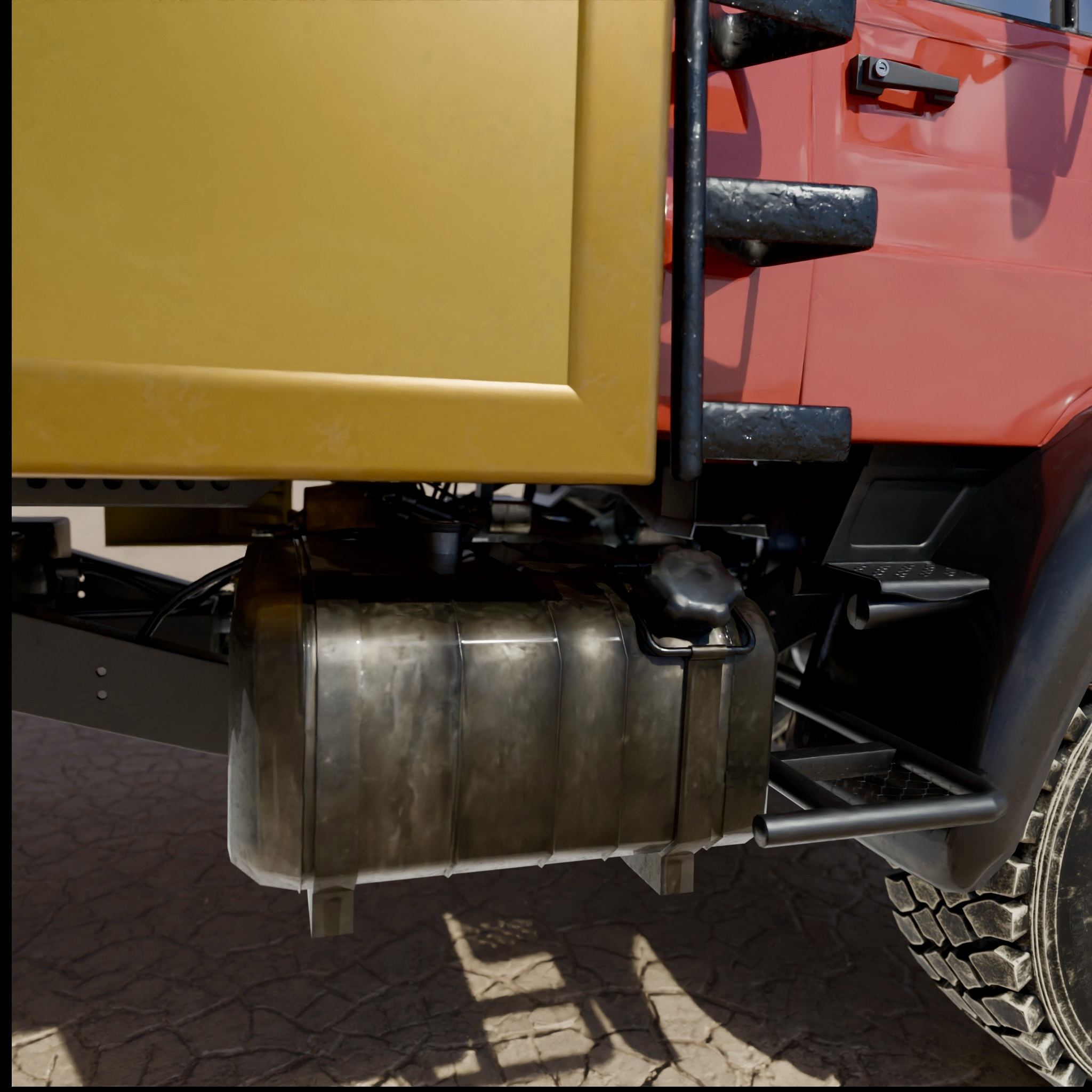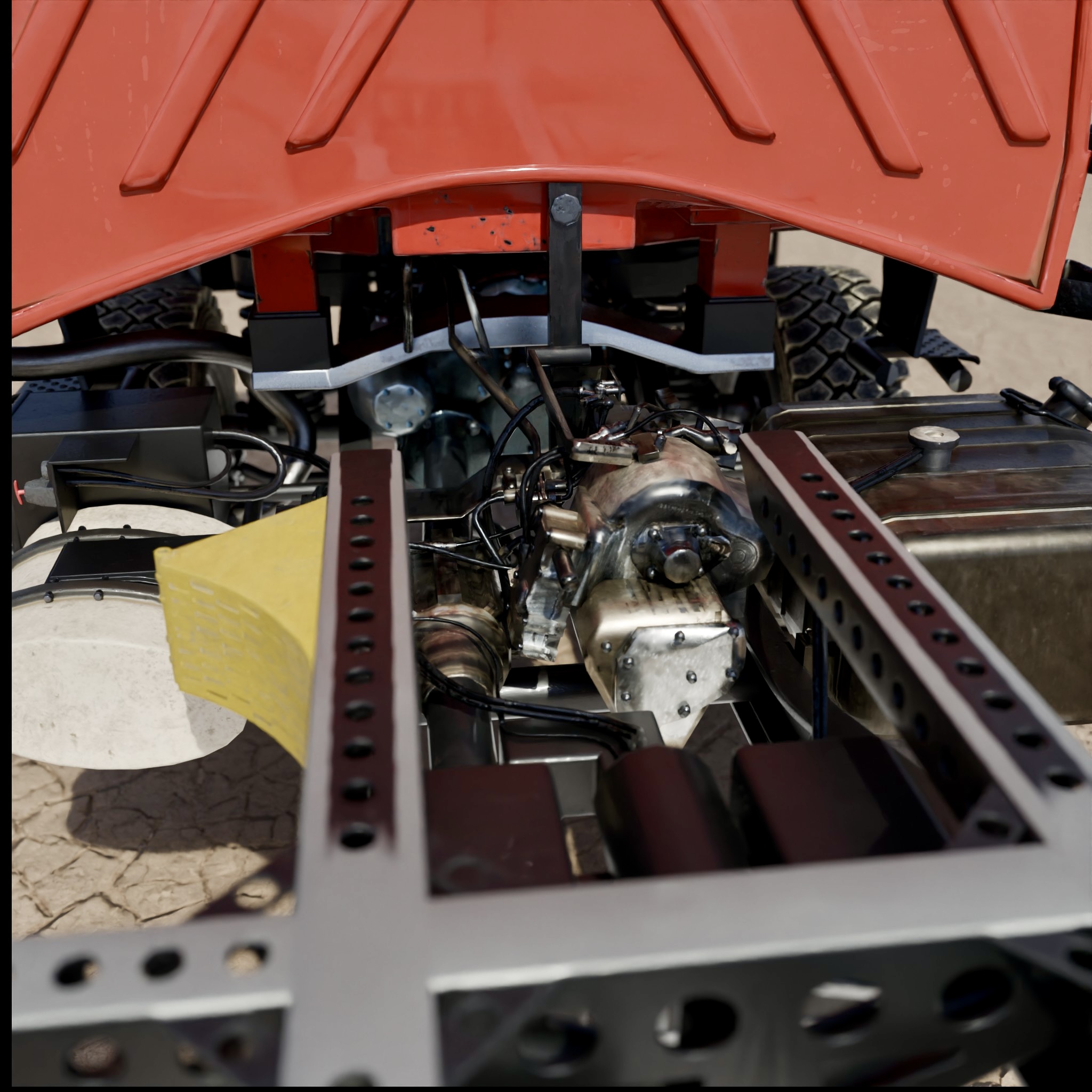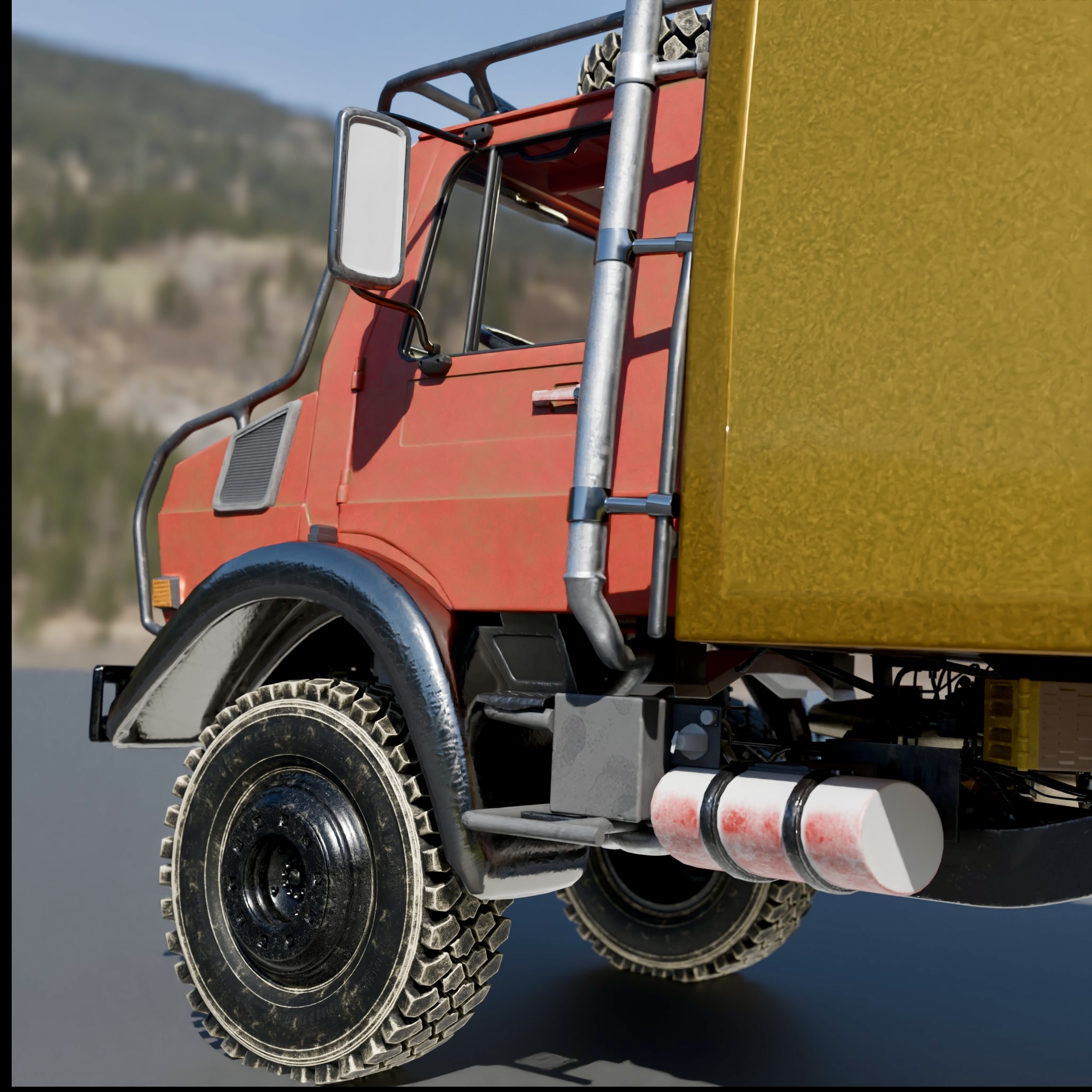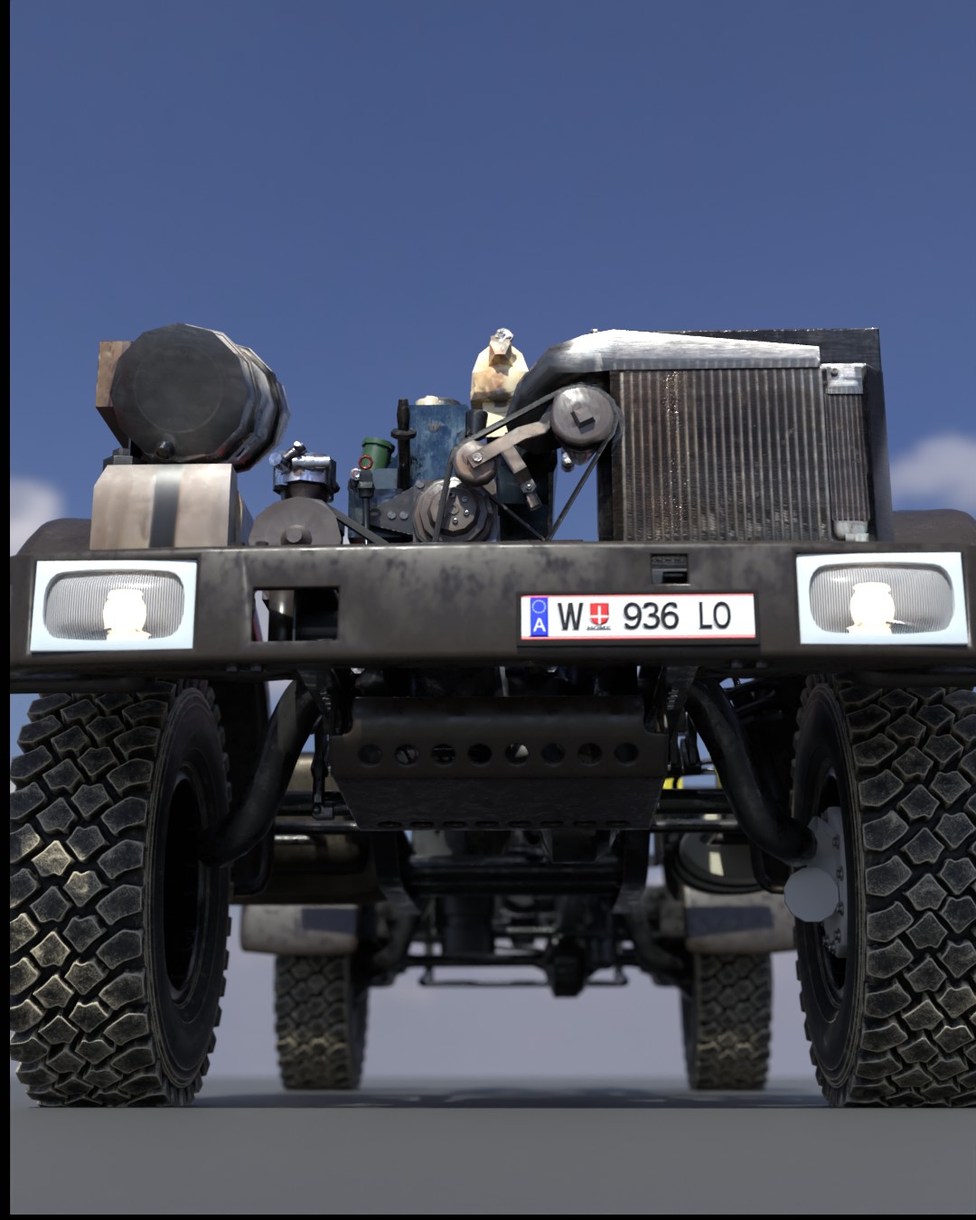 Anbei präsentiere ich meinen aktuellen Fortschritt beim 3D-Modell des Unimogs. Ich habe gestern die Renderings der Bilder erstellt und dabei bemerkt, dass ich komplett vergessen habe, das Gas-/Brems-/Kupplungspedal einzubauen. Das war wirklich ärgerlich, besonders weil ich bereits beim Texturieren war und einige Arbeitsschritte zurückgehen musste, um diesen kleinen, aber wichtigen Fehler zu korrigieren.