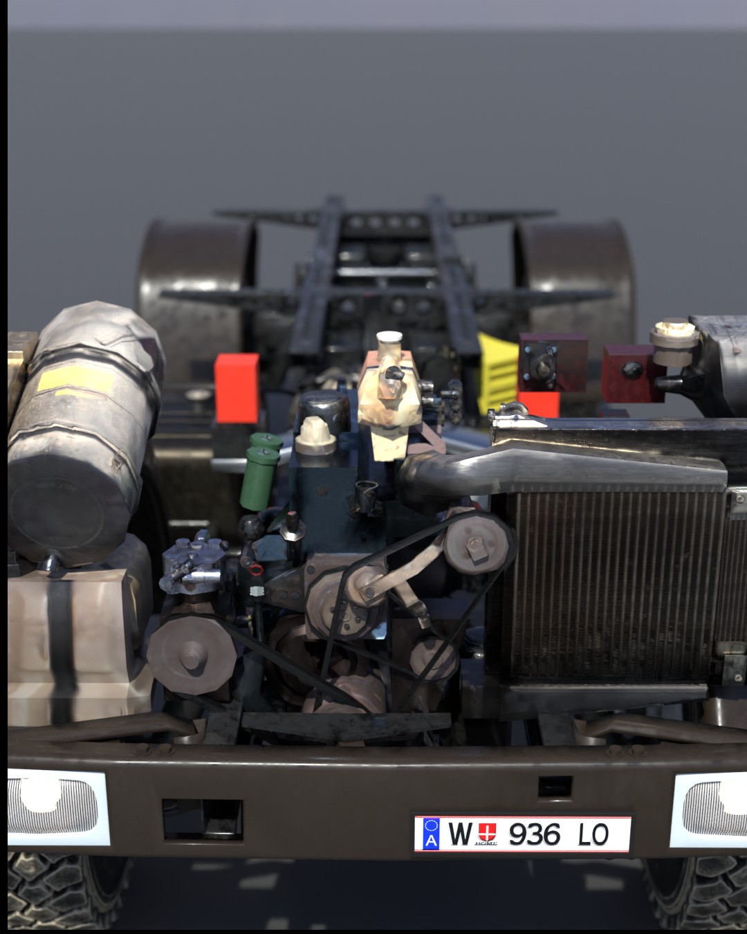 Die Federungen sind neu und das Nummernschild wurde bearbeitet. Jetzt werde ich das Low Poly Modell fertigstellen, damit ich den Truck texturieren kann.