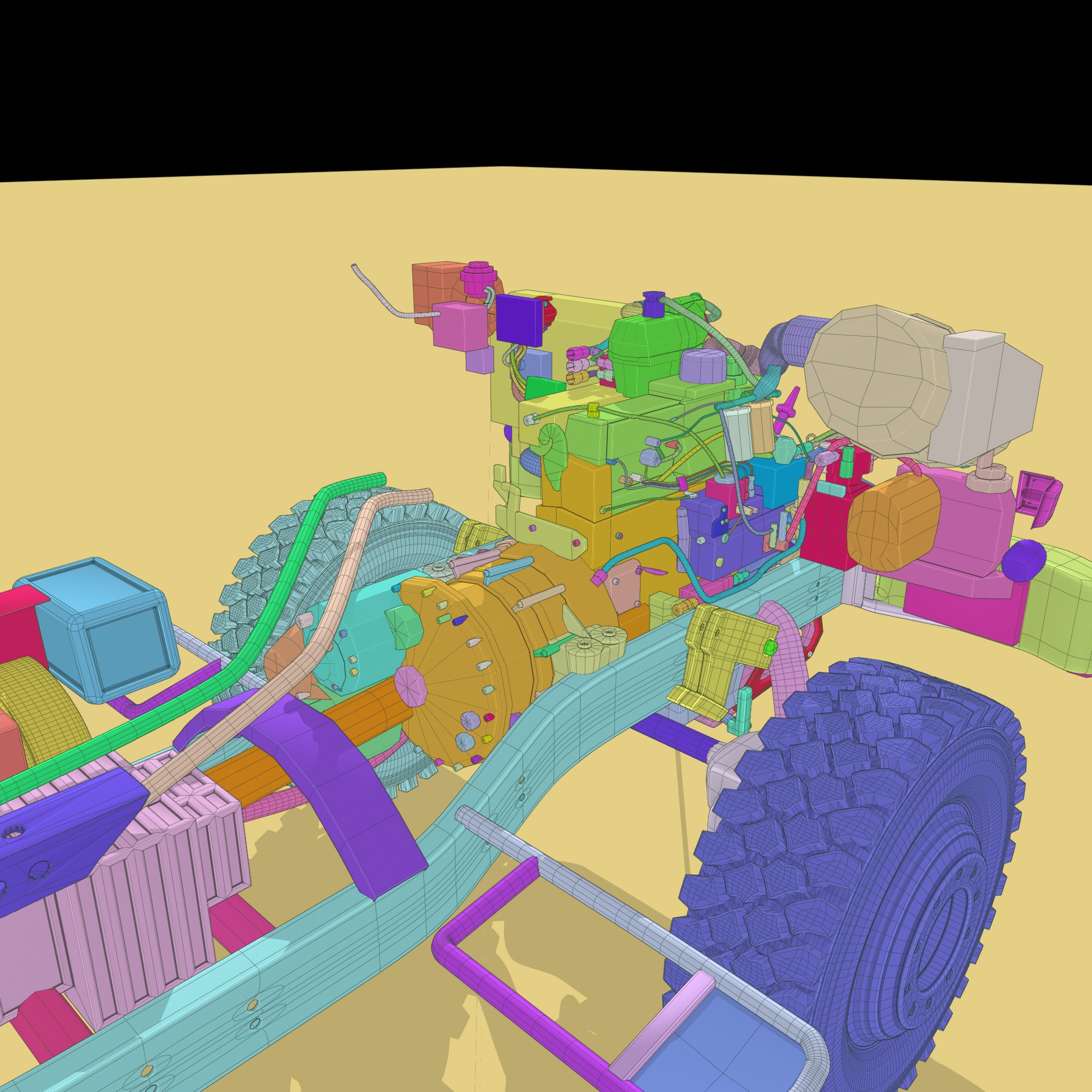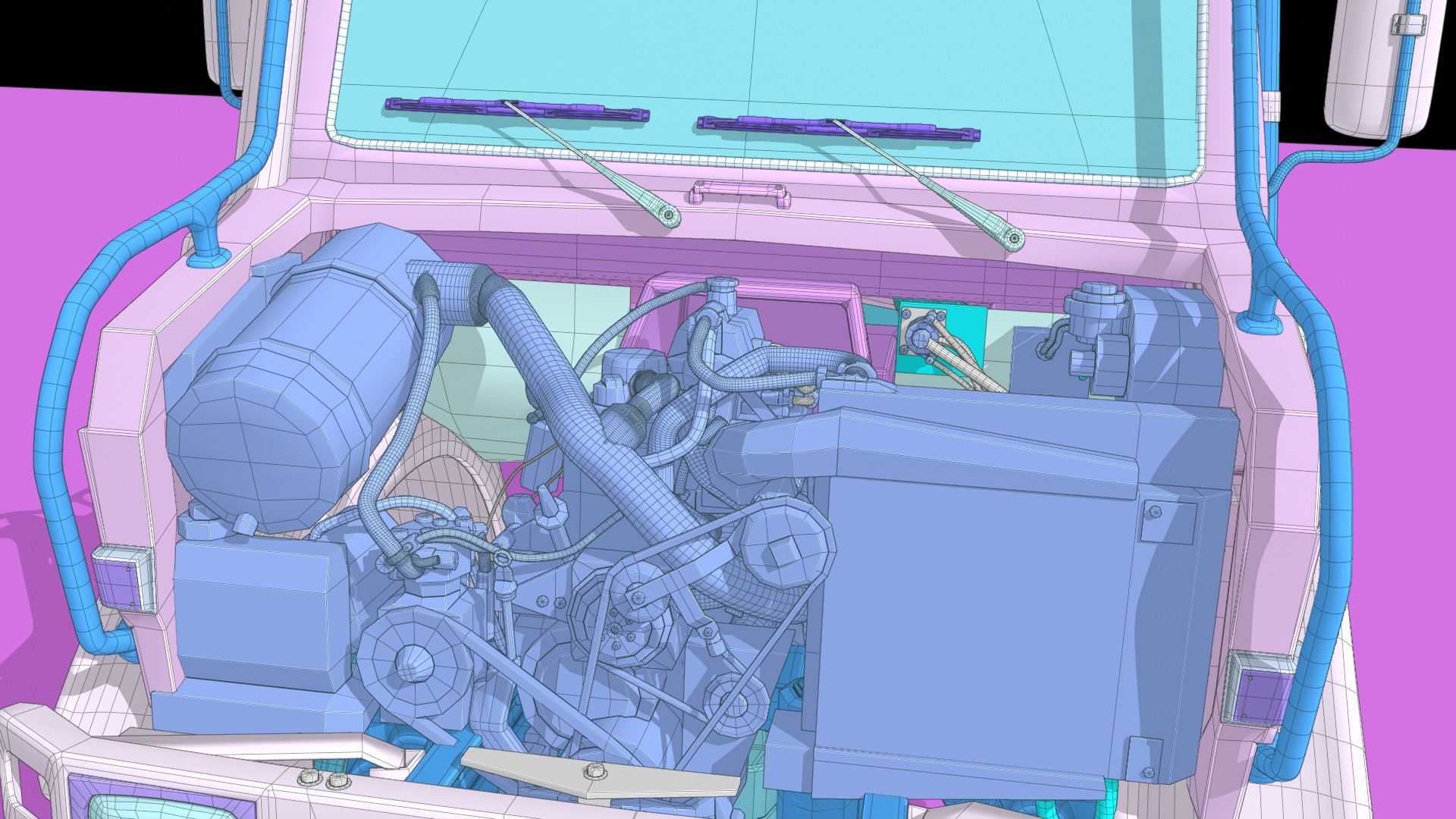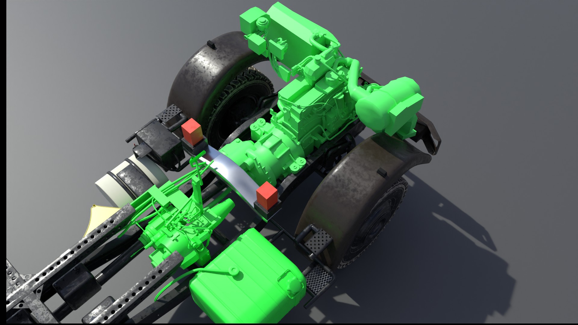 Hier möchte ich euch ein paar neue Bilder vom Unimog zeigen. Ich musste die Low-Poly-Daten verwerfen, da noch Anpassungen an vielen High-Poly-Teilen notwendig waren. Deshalb gibt es noch keine Textur. Diese behalte ich mir für den Schluss auf.
