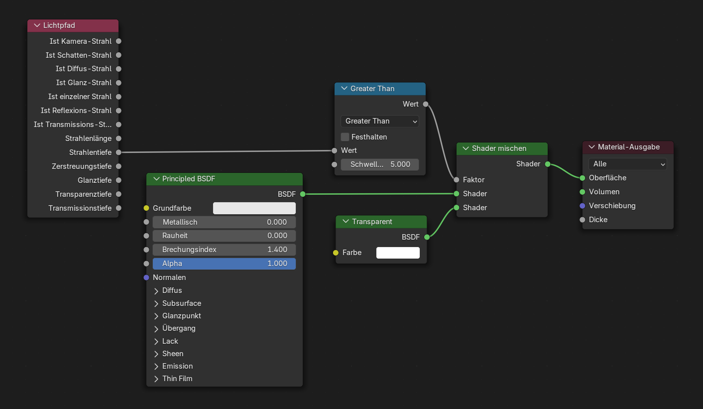 ich möchte eine Kamera rendern. Diese hat vier Glaslinsen, durch die die Lichtstrahlen dringen müssen.