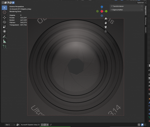 Um aber die Lichter als Fehlerquelle auszuschließen, benutze ich gerade nur HDRI und versuche zusätzlich im Compositor nur das Linsenglas zu entrauschen, damit mir auf den anderen Texturen nicht die feinen Details verloren gehen.