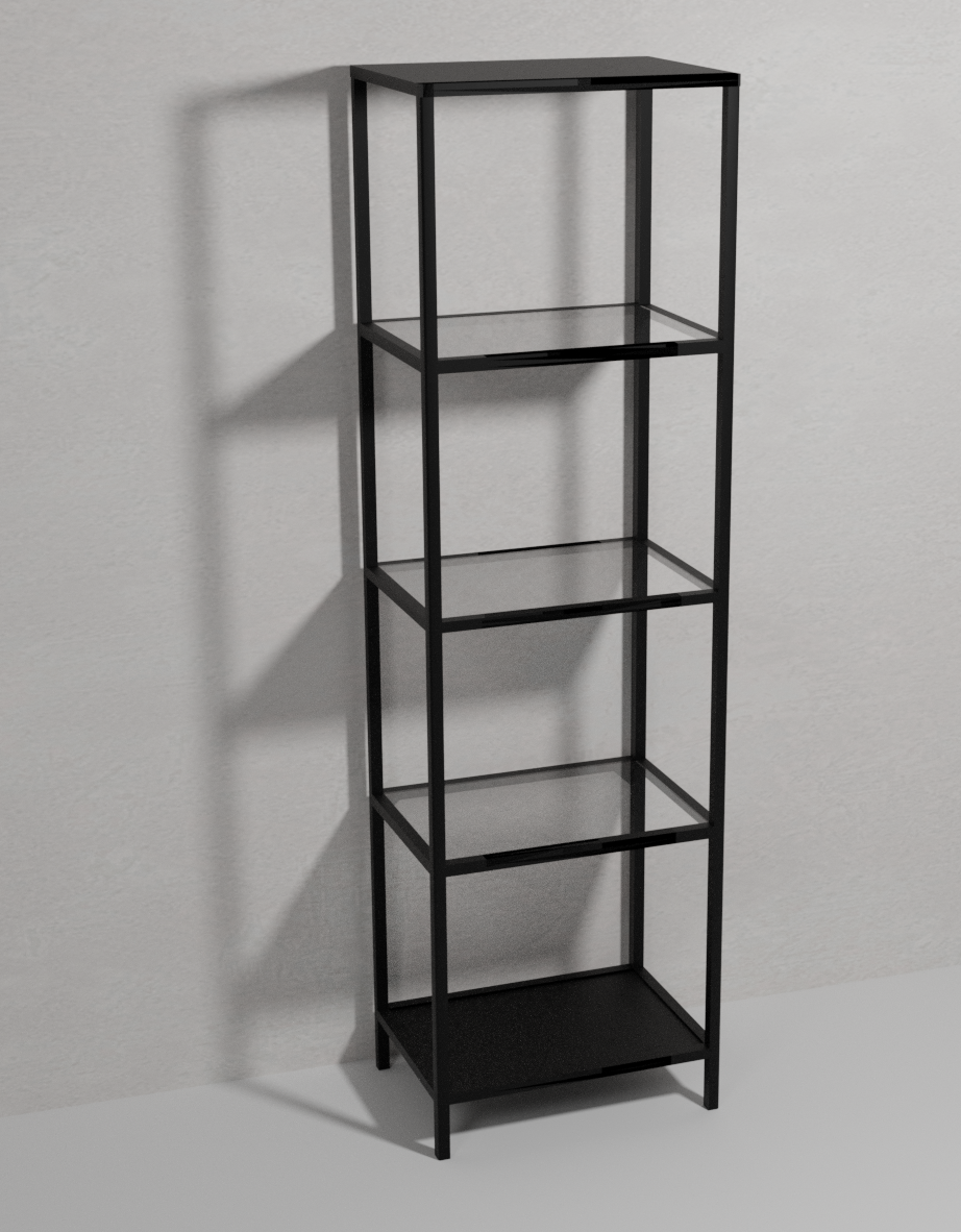 Beim Rendering wird in meinem Model das Glass zwar transparent dargestellt, jedoch sieht die Schattierung aus, als wäre es kein transparentes Material (siehe Foto, Glass-Regalböden)
