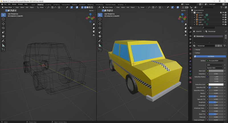 Das erste Objekt wird ein Taxi, das der Speiler steuern soll. Das ganze Projekt ist eher überschaubar gehalten, mein Hauptziel ist es, es in in etwa spielbarer und ansehnlicher Form fertig zu stellen