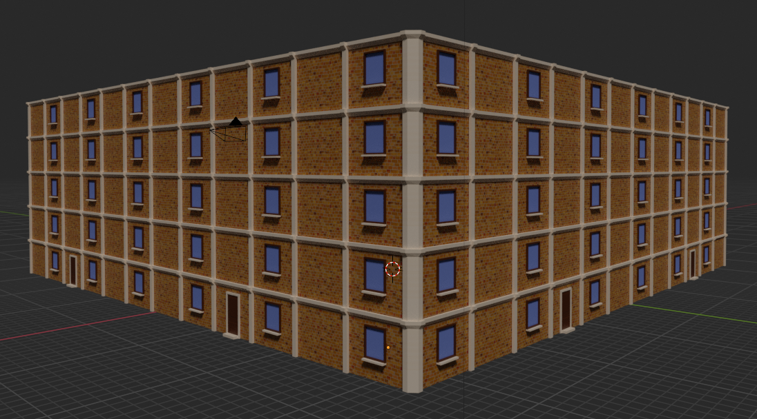 Ansonsten war ich letzte Woche im Urlaub und habe daher nur ein erstes Haus für die Umgebung geschafft. Eine gute Übung für den Array-Modifier, obwohl es mit Sicherheit auch Sinn machen würde, sich für sowas auf Dauer die Geometry-Nodes mal draufzuschaffen - aber alles zu seiner Zeit.