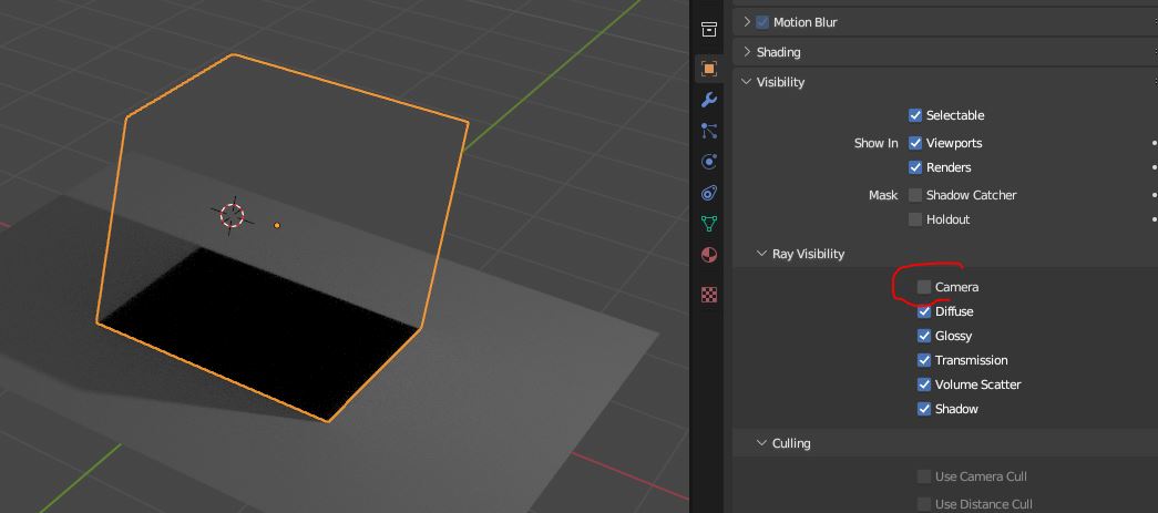 ich möchte das Objekt, dass einen Schatten auf eine Wand wirft nicht mitrendern. Es soll nur der Schatten zu sehen sein.