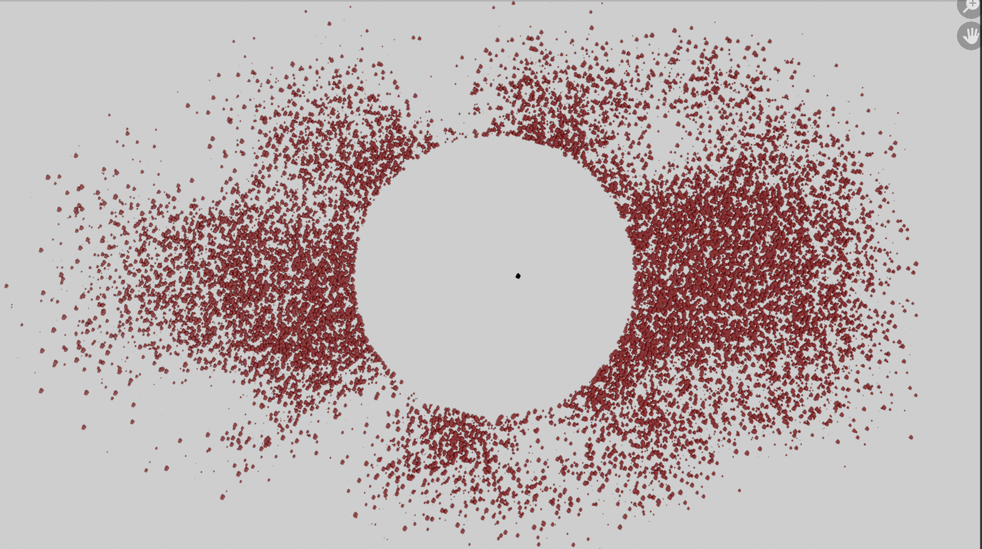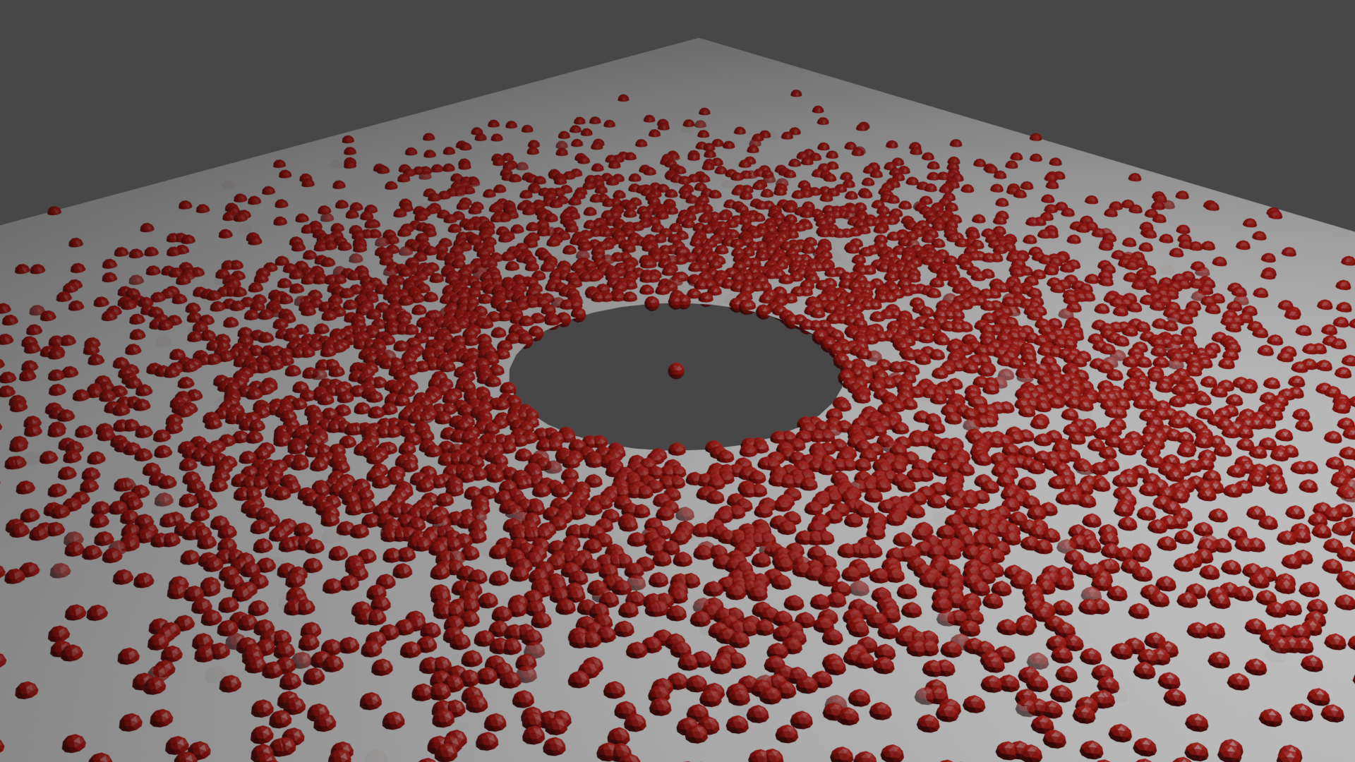 Ist zwar auf dem Render nicht optimal zu sehen, aber die Partikel werden in der Mitte aufgehäuft.