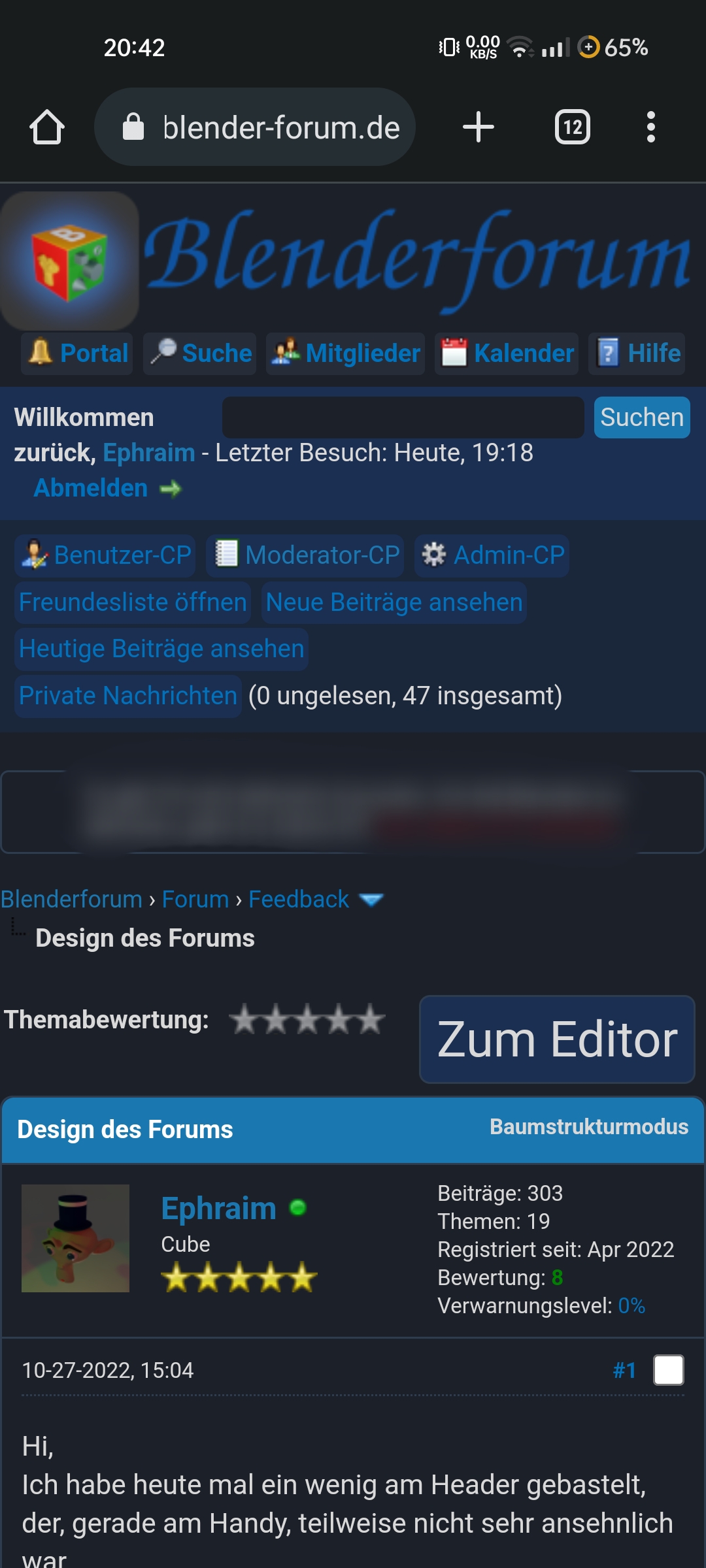 Das Design empfinde ich nun deutlich übersichtlicher und vor allem sind die ersten Links (Portal, Suche, Mitglieder etc.) nun nicht mehr in zwei Zeilen.